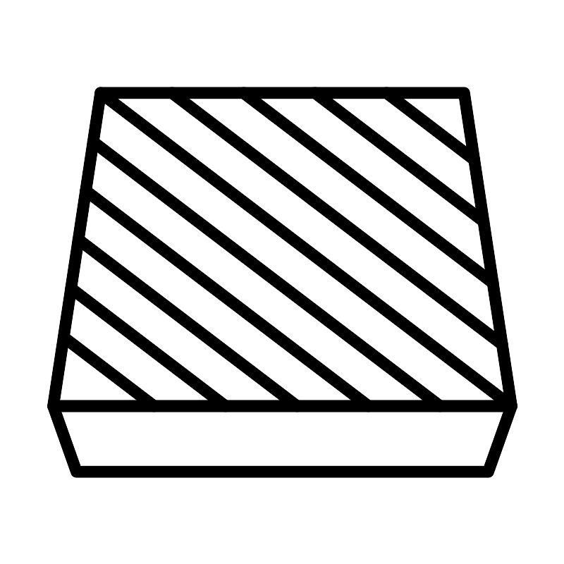 <svg width="800px" height="800px" viewBox="0 0 48 48" xmlns="http://www.w3.org/2000/svg"><defs><style>.a{fill:none;stroke:#000000;stroke-linecap:round;stroke-linejoin:round;}</style></defs><polygon class="a" points="39.47 7.88 8.53 7.88 4.5 34.53 43.5 34.53 39.47 7.88"/><line class="a" x1="8.53" y1="7.88" x2="43.5" y2="34.53"/><line class="a" x1="14.61" y1="7.88" x2="42.71" y2="29.29"/><line class="a" x1="20.7" y1="7.88" x2="41.92" y2="24.05"/><line class="a" x1="26.78" y1="7.88" x2="41.12" y2="18.81"/><line class="a" x1="32.87" y1="7.88" x2="40.33" y2="13.57"/><line class="a" x1="7.9" y1="12.04" x2="37.42" y2="34.53"/><line class="a" x1="7.27" y1="16.2" x2="31.33" y2="34.53"/><line class="a" x1="6.64" y1="20.35" x2="25.25" y2="34.53"/><line class="a" x1="6.02" y1="24.51" x2="19.16" y2="34.53"/><line class="a" x1="5.39" y1="28.67" x2="13.08" y2="34.53"/><polygon class="a" points="41.52 40.12 6.48 40.12 4.5 34.53 43.5 34.53 41.52 40.12"/></svg>