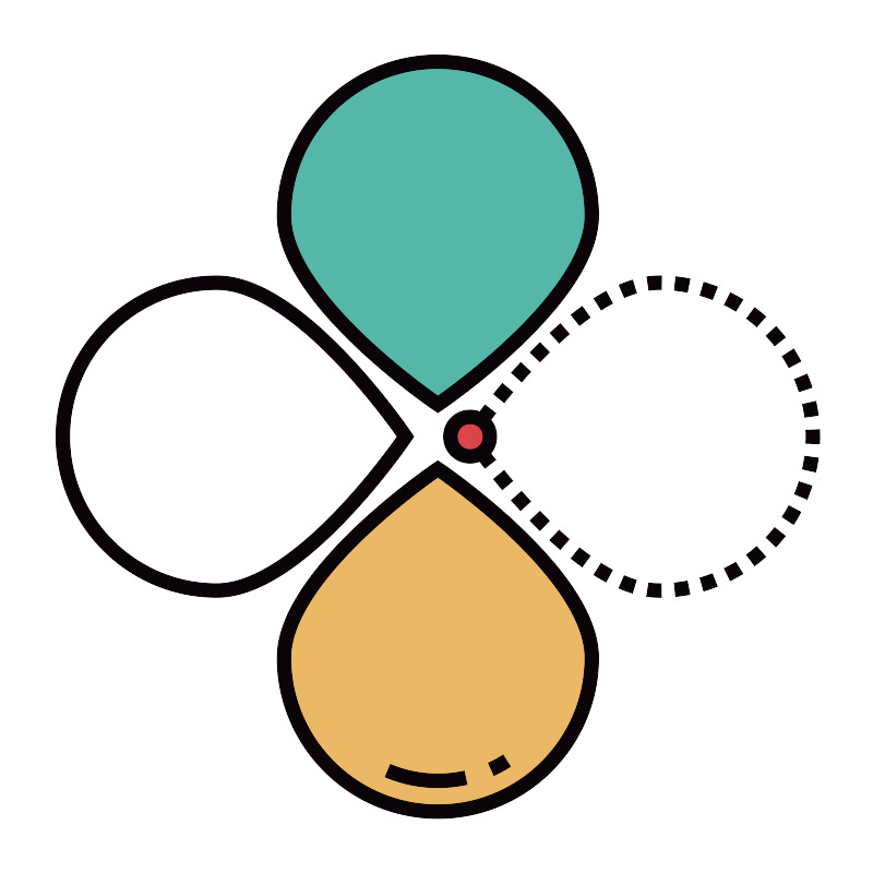 <svg width="800px" height="800px" viewBox="0 0 1024 1024" class="icon" version="1.1" xmlns="http://www.w3.org/2000/svg"><path d="M693.5 252.2c0 99.7-180.5 221.5-180.5 221.5S332.5 351.9 332.5 252.2 413.3 71.7 513 71.7s180.5 80.8 180.5 180.5z" fill="#55B7A8" /><path d="M513 483.4l-4.5-3c-0.5-0.3-46.2-31.3-91.3-74.2-61.5-58.5-92.7-110.3-92.7-153.9 0-103.9 84.6-188.5 188.5-188.5s188.5 84.6 188.5 188.5c0 43.6-31.2 95.4-92.7 153.9-45.1 42.9-90.8 73.9-91.3 74.2l-4.5 3z m0-403.7c-95.1 0-172.5 77.4-172.5 172.5 0 48.7 47.7 104.3 87.8 142.3 36 34.2 72.3 60.7 84.7 69.4 12.4-8.8 48.9-35.3 84.9-69.6 40-38 87.6-93.6 87.6-142.2 0-95-77.4-172.4-172.5-172.4z" fill="#0A0408" /><path d="M693.5 770.9c0-99.7-180.5-221.5-180.5-221.5S332.5 671.2 332.5 770.9 413.3 951.4 513 951.4s180.5-80.8 180.5-180.5z" fill="#EBB866" /><path d="M513 959.4c-103.9 0-188.5-84.6-188.5-188.5 0-43.6 31.2-95.4 92.7-153.9 45.1-42.9 90.8-73.9 91.3-74.2l4.5-3 4.5 3c0.5 0.3 46.2 31.3 91.3 74.2 61.5 58.5 92.7 110.3 92.7 153.9 0 103.9-84.6 188.5-188.5 188.5z m0-400.3c-12.4 8.8-48.9 35.3-84.9 69.6-40 38-87.6 93.6-87.6 142.2 0 95.1 77.4 172.5 172.5 172.5S685.5 866 685.5 770.9c0-48.6-47.6-104.2-87.6-142.2-36-34.3-72.5-60.8-84.9-69.6z" fill="#0A0408" /><path d="M575.5 901.7c6.3-2.9 12.5-6.2 18.3-9.9" fill="#E7B43B" /><path d="M578.8 909l-6.6-14.6c6-2.7 11.8-5.9 17.3-9.4l8.6 13.5c-6.2 3.9-12.7 7.5-19.3 10.5z" fill="#0A0408" /><path d="M454.3 903.4c18 7.6 37.9 11.9 58.7 11.9 11.1 0 22-1.2 32.5-3.5" fill="#E7B43B" /><path d="M513 923.2c-21.4 0-42.2-4.2-61.8-12.5l6.2-14.7c17.6 7.4 36.3 11.2 55.6 11.2 10.4 0 20.7-1.1 30.8-3.3l3.4 15.6c-11.2 2.5-22.7 3.7-34.2 3.7z" fill="#0A0408" /><path d="M548.9 522.7c-3-4.2-4.6-6.6-4.7-6.7l-3-4.5 3-4.5c0.1-0.1 1.7-2.5 4.7-6.7l13 9.3c-0.5 0.7-0.9 1.3-1.4 1.9 0.4 0.6 0.9 1.2 1.4 1.9l-13 9.3zM772.5 700h-0.2c-4.7 0-9.5-0.4-14.4-1.1l2.4-15.8c4.1 0.6 8.1 0.9 12 0.9h2.6l0.2 16h-2.6z m19.4-1l-1.6-15.9c5.1-0.5 10.2-1.3 15.2-2.2l3.1 15.7c-5.5 1-11.1 1.9-16.7 2.4z m-50.7-3.9c-5.2-1.6-10.5-3.5-15.9-5.8l6.3-14.7c4.8 2.1 9.6 3.8 14.2 5.2l-4.6 15.3z m83.6-2.5l-4.4-15.4c4.9-1.4 9.8-3.1 14.5-4.9l5.8 14.9c-5.2 2.1-10.6 3.9-15.9 5.4zM710.2 682c-4.7-2.5-9.5-5.4-14.3-8.4l8.6-13.5c4.5 2.9 9 5.5 13.3 7.9l-7.6 14z m145.8-1.5l-7.1-14.3c4.6-2.3 9.1-4.8 13.4-7.4l8.4 13.6c-4.8 2.9-9.7 5.6-14.7 8.1z m-173.7-16.2c-4.3-3.1-8.7-6.4-13.1-9.9l10-12.5c4.2 3.3 8.4 6.5 12.5 9.5l-9.4 12.9z m202.2-1.3l-9.5-12.9c4.1-3 8.1-6.3 11.9-9.7l10.6 12c-4.1 3.8-8.5 7.3-13 10.6z m-228-19.1c-4-3.5-8.1-7.1-12.2-10.9l10.9-11.7c3.9 3.6 7.9 7.2 11.8 10.5l-10.5 12.1z m253-3.1l-11.6-11c3.5-3.7 6.9-7.6 10-11.6l12.6 9.9c-3.5 4.4-7.2 8.7-11 12.7z m-276.9-19.1c-3.8-3.7-7.6-7.6-11.4-11.6l11.5-11.1c3.7 3.9 7.5 7.7 11.1 11.3l-11.2 11.4z m297.6-7.2l-13.4-8.8c2.8-4.3 5.4-8.7 7.8-13.2l14.1 7.5c-2.5 5-5.4 9.9-8.5 14.5zM610 598.3c-3.6-3.9-7.2-8-10.8-12.1l12-10.5c3.5 4 7.1 8 10.6 11.8L610 598.3zM946 585l-14.7-6.2c2-4.7 3.8-9.5 5.3-14.4l15.2 4.9c-1.7 5.3-3.6 10.6-5.8 15.7z m-357.4-11.2c-3.5-4.1-6.9-8.3-10.3-12.5l12.4-10.1c3.3 4.1 6.7 8.3 10.1 12.3l-12.2 10.3z m367.6-20.7l-15.6-3.5c1.1-5 2-10 2.7-15.1l15.9 2.1c-0.7 5.6-1.7 11.1-3 16.5z m-388-4.5c-3.3-4.3-6.6-8.6-9.8-12.9l12.8-9.6c3.1 4.2 6.4 8.5 9.6 12.7l-12.6 9.8zM960.7 520l-16-0.7c0.1-2.6 0.2-5.2 0.2-7.7s-0.1-5.1-0.2-7.6l16-0.7c0.1 2.7 0.2 5.5 0.2 8.3 0 2.8-0.1 5.6-0.2 8.4z m-389.4-23.2l-12.8-9.6c3.2-4.3 6.5-8.6 9.8-12.9l12.6 9.8c-3.3 4.3-6.5 8.5-9.6 12.7z m372.1-8.1c-0.7-5-1.6-10.1-2.7-15.1l15.6-3.5c1.2 5.4 2.2 11 2.9 16.5l-15.8 2.1z m-352.6-17l-12.4-10.1c3.4-4.2 6.9-8.4 10.3-12.5l12.2 10.3c-3.4 4-6.8 8.1-10.1 12.3z m345.8-12.9c-1.6-4.8-3.3-9.7-5.3-14.4l14.7-6.2c2.2 5.1 4.1 10.4 5.8 15.7l-15.2 4.9z m-325.3-11.5l-12-10.6c3.6-4.1 7.3-8.2 10.8-12.1l11.8 10.8c-3.5 3.9-7.1 7.9-10.6 11.9z m313.4-16.7c-2.4-4.5-5-8.9-7.8-13.2l13.4-8.7c3 4.7 5.9 9.5 8.5 14.4l-14.1 7.5z m-291.9-6.7l-11.5-11.1c3.8-4 7.7-7.9 11.4-11.6l11.2 11.4c-3.7 3.7-7.4 7.5-11.1 11.3zM908 405c-3.1-4-6.5-7.9-10-11.6l11.7-11c3.8 4.1 7.5 8.3 10.9 12.7L908 405z m-252.7-3.3L644.5 390c4.1-3.8 8.2-7.4 12.2-10.9l10.5 12.1c-4 3.4-7.9 6.9-11.9 10.5z m231.7-19c-3.8-3.4-7.8-6.6-11.9-9.7l9.5-12.8c4.5 3.3 8.8 6.9 13 10.6L887 382.7z m-207.8-1.5l-10-12.5c4.4-3.5 8.8-6.8 13.1-9.9l9.3 13c-4 2.9-8.2 6-12.4 9.4z m183.2-16.8c-4.3-2.7-8.8-5.2-13.4-7.4l7.1-14.3c5 2.5 9.9 5.2 14.7 8.1l-8.4 13.6zM704.6 363l-8.6-13.5c4.8-3.1 9.6-5.9 14.3-8.4l7.6 14.1c-4.3 2.3-8.8 4.9-13.3 7.8zM835 350.8c-4.7-1.8-9.6-3.5-14.5-4.9l4.5-15.4c5.3 1.6 10.7 3.4 15.9 5.4l-5.9 14.9z m-103.2-2.4l-6.3-14.7c5.4-2.3 10.7-4.3 15.9-5.8l4.6 15.3c-4.6 1.4-9.4 3.2-14.2 5.2z m73.8-6.2c-5-1-10.1-1.7-15.2-2.3l1.7-15.9c5.5 0.6 11.1 1.4 16.6 2.5l-3.1 15.7z m-45.1-2.3l-2.3-15.8c4.8-0.7 9.6-1.1 14.2-1.1h3l-0.3 16h-2.8c-3.8 0-7.8 0.3-11.8 0.9z" fill="#0A0408" /><path d="M253.6 692c99.7 0 221.5-180.5 221.5-180.5S353.3 331 253.6 331 73.1 411.9 73.1 511.5 154 692 253.6 692z" fill="#FFFFFF" /><path d="M253.6 700c-103.9 0-188.5-84.6-188.5-188.5S149.7 323 253.6 323c43.6 0 95.4 31.2 153.9 92.7 42.9 45.1 73.9 90.8 74.2 91.3l3 4.5-3 4.5c-0.3 0.5-31.3 46.2-74.2 91.3-58.4 61.5-110.2 92.7-153.9 92.7z m0-361c-95.1 0-172.5 77.4-172.5 172.5S158.5 684 253.6 684c48.7 0 104.3-47.7 142.3-87.8 34.2-36 60.7-72.3 69.4-84.7-8.8-12.4-35.3-48.9-69.6-84.9-37.9-39.9-93.4-87.6-142.1-87.6z" fill="#0A0408" /><path d="M551.3 534.6h-1c-12.5 0-22.6-10.1-22.6-22.6v-1c0-12.5 10.1-22.6 22.6-22.6h1c12.5 0 22.6 10.1 22.6 22.6v1c0 12.5-10.1 22.6-22.6 22.6z" fill="#DC444A" /><path d="M551.3 542.6h-1c-16.8 0-30.6-13.7-30.6-30.6v-1c0-16.8 13.7-30.6 30.6-30.6h1c16.8 0 30.6 13.7 30.6 30.6v1c0 16.9-13.7 30.6-30.6 30.6z m-0.9-46.1c-8 0-14.6 6.5-14.6 14.6v1c0 8 6.5 14.6 14.6 14.6h1c8 0 14.6-6.5 14.6-14.6v-1c0-8-6.5-14.6-14.6-14.6h-1z" fill="#0A0408" /></svg>