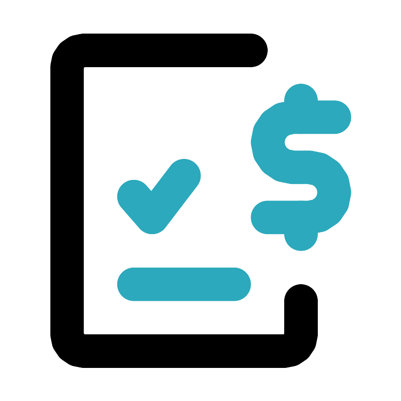 <svg fill="#000000" width="800px" height="800px" viewBox="0 0 24 24" id="invoice-dollar-done" data-name="Line Color" xmlns="http://www.w3.org/2000/svg" class="icon line-color"><polyline id="secondary" points="11 10.5 9.09 13 8 11.75" style="fill: none; stroke: rgb(44, 169, 188); stroke-linecap: round; stroke-linejoin: round; stroke-width: 2;"></polyline><path id="secondary-2" data-name="secondary" d="M20,7H17.5A1.5,1.5,0,0,0,16,8.5h0A1.5,1.5,0,0,0,17.5,10h1A1.5,1.5,0,0,1,20,11.5h0A1.5,1.5,0,0,1,18.5,13H16" style="fill: none; stroke: rgb(44, 169, 188); stroke-linecap: round; stroke-linejoin: round; stroke-width: 2;"></path><path id="secondary-3" data-name="secondary" d="M14,17H8M18,7V6m0,8V13" style="fill: none; stroke: rgb(44, 169, 188); stroke-linecap: round; stroke-linejoin: round; stroke-width: 2;"></path><path id="primary" d="M15,3H5A1,1,0,0,0,4,4V20a1,1,0,0,0,1,1H17a1,1,0,0,0,1-1V18" style="fill: none; stroke: rgb(0, 0, 0); stroke-linecap: round; stroke-linejoin: round; stroke-width: 2;"></path></svg>