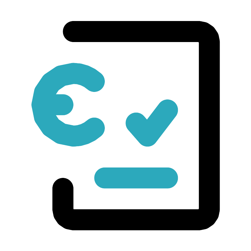 <svg fill="#000000" width="800px" height="800px" viewBox="0 0 24 24" id="invoice-euro-done-left" data-name="Line Color" xmlns="http://www.w3.org/2000/svg" class="icon line-color"><polyline id="secondary" points="16 10.5 14.09 13 13 11.75" style="fill: none; stroke: rgb(44, 169, 188); stroke-linecap: round; stroke-linejoin: round; stroke-width: 2;"></polyline><path id="secondary-2" data-name="secondary" d="M10,17h6M4,10H6" style="fill: none; stroke: rgb(44, 169, 188); stroke-linecap: round; stroke-linejoin: round; stroke-width: 2;"></path><path id="secondary-3" data-name="secondary" d="M9,7.77A3,3,0,0,0,7,7H7a3,3,0,0,0-3,3H4a3,3,0,0,0,3,3H7a3,3,0,0,0,2-.77" style="fill: none; stroke: rgb(44, 169, 188); stroke-linecap: round; stroke-linejoin: round; stroke-width: 2;"></path><path id="primary" d="M6,18v2a1,1,0,0,0,1,1H19a1,1,0,0,0,1-1V4a1,1,0,0,0-1-1H7" style="fill: none; stroke: rgb(0, 0, 0); stroke-linecap: round; stroke-linejoin: round; stroke-width: 2;"></path></svg>