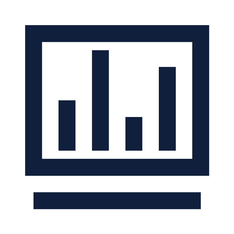 <svg width="800px" height="800px" viewBox="0 0 1024 1024" class="icon" version="1.1" xmlns="http://www.w3.org/2000/svg"><path d="M109.71 109.71V768h804.57V109.71H109.71z m731.43 585.15H182.86v-512h658.29v512zM146.29 841.14h731.43v73.14H146.29z" fill="#0F1F3C" /><path d="M256 438.86h73.14v219.43H256zM402.29 219.43h73.14v438.86h-73.14zM694.86 292.57H768v365.71h-73.14zM548.57 512h73.14v146.29h-73.14z" fill="#0F1F3C" /></svg>