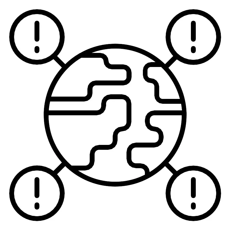 <path d="M84,72c-2.7,0-5.2,0.9-7.2,2.4c0,0,0-0.1-0.1-0.1l-3.6-3.6C78,65.2,81,57.9,81,50c0-0.3,0-0.6,0-0.9c0,0,0-0.1,0-0.1 c0-0.1,0-0.1,0-0.1c-0.3-7.5-3.2-14.3-7.9-19.5l3.6-3.6c0,0,0.1-0.1,0.1-0.1c2,1.5,4.5,2.4,7.2,2.4c6.6,0,12-5.4,12-12 S90.6,4,84,4S72,9.4,72,16c0,3.2,1.3,6.1,3.3,8.3c0,0,0,0,0,0l-3.6,3.6C66.1,22.4,58.4,19,50,19c-5.6,0-10.8,1.5-15.3,4.1 c-0.1,0-0.3,0.1-0.4,0.2c-2.2,1.3-4.2,2.8-6,4.6l-3.6-3.6c0,0,0,0,0,0c2.1-2.2,3.3-5.1,3.3-8.3c0-6.6-5.4-12-12-12S4,9.4,4,16 s5.4,12,12,12c2.7,0,5.2-0.9,7.2-2.4c0,0,0,0.1,0.1,0.1l3.6,3.6c-4.7,5.2-7.6,12-7.9,19.5c0,0,0,0.1,0,0.1c0,0,0,0.1,0,0.1 c0,0.3,0,0.6,0,0.9c0,7.9,3,15.2,7.9,20.7l-3.6,3.6c0,0-0.1,0.1-0.1,0.1c-2-1.5-4.5-2.4-7.2-2.4C9.4,72,4,77.4,4,84s5.4,12,12,12 s12-5.4,12-12c0-3.2-1.3-6.1-3.3-8.3c0,0,0,0,0,0l3.6-3.6C33.9,77.6,41.6,81,50,81s16.1-3.4,21.7-8.9l3.6,3.6c0,0,0,0,0,0 C73.3,77.9,72,80.8,72,84c0,6.6,5.4,12,12,12s12-5.4,12-12S90.6,72,84,72z M84,6c5.5,0,10,4.5,10,10s-4.5,10-10,10s-10-4.5-10-10 S78.5,6,84,6z M6,16c0-5.5,4.5-10,10-10s10,4.5,10,10s-4.5,10-10,10S6,21.5,6,16z M16,94c-5.5,0-10-4.5-10-10s4.5-10,10-10 s10,4.5,10,10S21.5,94,16,94z M65.5,34c-0.8,0-1.5-0.7-1.5-1.5v-2c0-0.8,0.7-1.5,1.5-1.5H70c3.9,3.7,6.8,8.6,8.2,14h-7.6 c-0.8,0-1.5-0.7-1.5-1.5v-4C69,35.6,67.4,34,65.5,34z M35.3,25h8.2c0.8,0,1.5,0.7,1.5,1.5c0,1.9,1.6,3.5,3.5,3.5h5 c0.8,0,1.5,0.7,1.5,1.5v2c0,0.8-0.7,1.5-1.5,1.5h-12c-1.9,0-3.5,1.6-3.5,3.5v2c0,0.8-0.7,1.5-1.5,1.5H22.1 C24.2,34.8,29,28.7,35.3,25z M21,50h21c2.2,0,4-1.8,4-4v-1c0-1.1,0.9-2,2-2h5c1.1,0,2,0.9,2,2v8c0,1.1-0.9,2-2,2c-2.2,0-4,1.8-4,4 v2c0,1.1-0.9,2-2,2h-4c-2.2,0-4,1.8-4,4v3c0,1.1-0.9,2-2,2h-5.9C24.9,66.7,21,58.8,21,50z M33.7,74H37c2.2,0,4-1.8,4-4v-3 c0-1.1,0.9-2,2-2h4c2.2,0,4-1.8,4-4v-2c0-1.1,0.9-2,2-2c2.2,0,4-1.8,4-4v-8c0-2.2-1.8-4-4-4h-5c-2.2,0-4,1.8-4,4v1 c0,1.1-0.9,2-2,2H21.1c0.1-1.4,0.3-2.7,0.6-4h14.9c1.9,0,3.5-1.6,3.5-3.5v-2c0-0.8,0.7-1.5,1.5-1.5h12c1.9,0,3.5-1.6,3.5-3.5v-2 c0-1.9-1.6-3.5-3.5-3.5h-5c-0.8,0-1.5-0.7-1.5-1.5c0-1.9-1.6-3.5-3.5-3.5h-4.1c3.3-1.3,6.8-2,10.6-2c6.6,0,12.7,2.2,17.6,6h-2.1 c-1.9,0-3.5,1.6-3.5,3.5v2c0,1.9,1.6,3.5,3.5,3.5c0.8,0,1.5,0.7,1.5,1.5v4c0,1.9,1.6,3.5,3.5,3.5h8.1c0.2,1,0.3,2,0.4,3H67 c-2.2,0-4,1.8-4,4v1c0,2.2,1.8,4,4,4c1.1,0,2,0.9,2,2v1c0,1.1-0.9,2-2,2h-8c-2.2,0-4,1.8-4,4v3c0,2.2,1.8,4,4,4h2c1.1,0,2,0.9,2,2 v0.9c-3.9,2-8.3,3.1-13,3.1C44,79,38.4,77.2,33.7,74z M65,74.8c-0.1-2.1-1.8-3.8-4-3.8h-2c-1.1,0-2-0.9-2-2v-3c0-1.1,0.9-2,2-2h8 c2.2,0,4-1.8,4-4v-1c0-2.2-1.8-4-4-4c-1.1,0-2-0.9-2-2v-1c0-1.1,0.9-2,2-2h12C79,60.5,73.4,69.7,65,74.8z M84,94 c-5.5,0-10-4.5-10-10s4.5-10,10-10s10,4.5,10,10S89.5,94,84,94z"/>