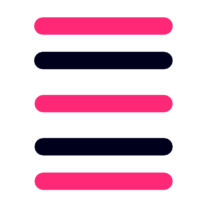 <svg width="800px" height="800px" viewBox="0 0 6.3499998 6.3499998" id="svg8" version="1.1" xmlns="http://www.w3.org/2000/svg" xmlns:cc="http://creativecommons.org/ns#" xmlns:dc="http://purl.org/dc/elements/1.1/" xmlns:rdf="http://www.w3.org/1999/02/22-rdf-syntax-ns#" xmlns:svg="http://www.w3.org/2000/svg"><defs id="defs2"/><path d="M 1.296875,0.52929701 A 0.2649528,0.2649528 0 0 0 1.322266,1.0585939 h 3.7050782 a 0.26464847,0.26464847 0 1 0 0,-0.52929689 H 1.3222656 a 0.26460978,0.26460978 0 0 0 -0.025391,0 z" id="path1394-7" style="color:#000000;font-style:normal;font-variant:normal;font-weight:normal;font-stretch:normal;font-size:medium;line-height:normal;font-family:sans-serif;font-variant-ligatures:normal;font-variant-position:normal;font-variant-caps:normal;font-variant-numeric:normal;font-variant-alternates:normal;font-feature-settings:normal;text-indent:0;text-align:start;text-decoration:none;text-decoration-line:none;text-decoration-style:solid;text-decoration-color:#000000;letter-spacing:normal;word-spacing:normal;text-transform:none;writing-mode:lr-tb;direction:ltr;text-orientation:mixed;dominant-baseline:auto;baseline-shift:baseline;text-anchor:start;white-space:normal;shape-padding:0;clip-rule:nonzero;display:inline;overflow:visible;visibility:visible;opacity:1;isolation:auto;mix-blend-mode:normal;color-interpolation:sRGB;color-interpolation-filters:linearRGB;solid-color:#000000;solid-opacity:1;vector-effect:none;fill:#ff2876;fill-opacity:1;fill-rule:nonzero;stroke:none;stroke-width:0.52916664;stroke-linecap:round;stroke-linejoin:round;stroke-miterlimit:4;stroke-dasharray:none;stroke-dashoffset:0;stroke-opacity:1;paint-order:markers fill stroke;color-rendering:auto;image-rendering:auto;shape-rendering:auto;text-rendering:auto;enable-background:accumulate"/><path d="m 1.296875,1.5878907 a 0.26495283,0.26495283 0 0 0 0.025391,0.529297 h 3.7050782 a 0.2646485,0.2646485 0 1 0 0,-0.529297 H 1.3222656 a 0.26460978,0.26460978 0 0 0 -0.025391,0 z" id="path1402-0" style="color:#000000;font-style:normal;font-variant:normal;font-weight:normal;font-stretch:normal;font-size:medium;line-height:normal;font-family:sans-serif;font-variant-ligatures:normal;font-variant-position:normal;font-variant-caps:normal;font-variant-numeric:normal;font-variant-alternates:normal;font-feature-settings:normal;text-indent:0;text-align:start;text-decoration:none;text-decoration-line:none;text-decoration-style:solid;text-decoration-color:#000000;letter-spacing:normal;word-spacing:normal;text-transform:none;writing-mode:lr-tb;direction:ltr;text-orientation:mixed;dominant-baseline:auto;baseline-shift:baseline;text-anchor:start;white-space:normal;shape-padding:0;clip-rule:nonzero;display:inline;overflow:visible;visibility:visible;opacity:1;isolation:auto;mix-blend-mode:normal;color-interpolation:sRGB;color-interpolation-filters:linearRGB;solid-color:#000000;solid-opacity:1;vector-effect:none;fill:#00001d;fill-opacity:1;fill-rule:nonzero;stroke:none;stroke-width:0.52916664;stroke-linecap:round;stroke-linejoin:round;stroke-miterlimit:4;stroke-dasharray:none;stroke-dashoffset:0;stroke-opacity:1;paint-order:markers fill stroke;color-rendering:auto;image-rendering:auto;shape-rendering:auto;text-rendering:auto;enable-background:accumulate"/><path d="m 1.3222656,2.9101563 a 0.2646485,0.2646485 0 1 0 0,0.529297 h 3.7050783 a 0.2646485,0.2646485 0 1 0 0,-0.529297 z" id="path1416-93" style="color:#000000;font-style:normal;font-variant:normal;font-weight:normal;font-stretch:normal;font-size:medium;line-height:normal;font-family:sans-serif;font-variant-ligatures:normal;font-variant-position:normal;font-variant-caps:normal;font-variant-numeric:normal;font-variant-alternates:normal;font-feature-settings:normal;text-indent:0;text-align:start;text-decoration:none;text-decoration-line:none;text-decoration-style:solid;text-decoration-color:#000000;letter-spacing:normal;word-spacing:normal;text-transform:none;writing-mode:lr-tb;direction:ltr;text-orientation:mixed;dominant-baseline:auto;baseline-shift:baseline;text-anchor:start;white-space:normal;shape-padding:0;clip-rule:nonzero;display:inline;overflow:visible;visibility:visible;opacity:1;isolation:auto;mix-blend-mode:normal;color-interpolation:sRGB;color-interpolation-filters:linearRGB;solid-color:#000000;solid-opacity:1;vector-effect:none;fill:#ff2876;fill-opacity:1;fill-rule:nonzero;stroke:none;stroke-width:0.52916664;stroke-linecap:round;stroke-linejoin:round;stroke-miterlimit:4;stroke-dasharray:none;stroke-dashoffset:0;stroke-opacity:1;paint-order:markers fill stroke;color-rendering:auto;image-rendering:auto;shape-rendering:auto;text-rendering:auto;enable-background:accumulate"/><path d="m 1.3222656,4.232422 a 0.26464855,0.26464855 0 1 0 0,0.5292971 h 3.7050783 a 0.26464855,0.26464855 0 1 0 0,-0.5292971 z" id="path1418-6" style="color:#000000;font-style:normal;font-variant:normal;font-weight:normal;font-stretch:normal;font-size:medium;line-height:normal;font-family:sans-serif;font-variant-ligatures:normal;font-variant-position:normal;font-variant-caps:normal;font-variant-numeric:normal;font-variant-alternates:normal;font-feature-settings:normal;text-indent:0;text-align:start;text-decoration:none;text-decoration-line:none;text-decoration-style:solid;text-decoration-color:#000000;letter-spacing:normal;word-spacing:normal;text-transform:none;writing-mode:lr-tb;direction:ltr;text-orientation:mixed;dominant-baseline:auto;baseline-shift:baseline;text-anchor:start;white-space:normal;shape-padding:0;clip-rule:nonzero;display:inline;overflow:visible;visibility:visible;opacity:1;isolation:auto;mix-blend-mode:normal;color-interpolation:sRGB;color-interpolation-filters:linearRGB;solid-color:#000000;solid-opacity:1;vector-effect:none;fill:#00001d;fill-opacity:1;fill-rule:nonzero;stroke:none;stroke-width:0.52916664;stroke-linecap:round;stroke-linejoin:round;stroke-miterlimit:4;stroke-dasharray:none;stroke-dashoffset:0;stroke-opacity:1;paint-order:markers fill stroke;color-rendering:auto;i