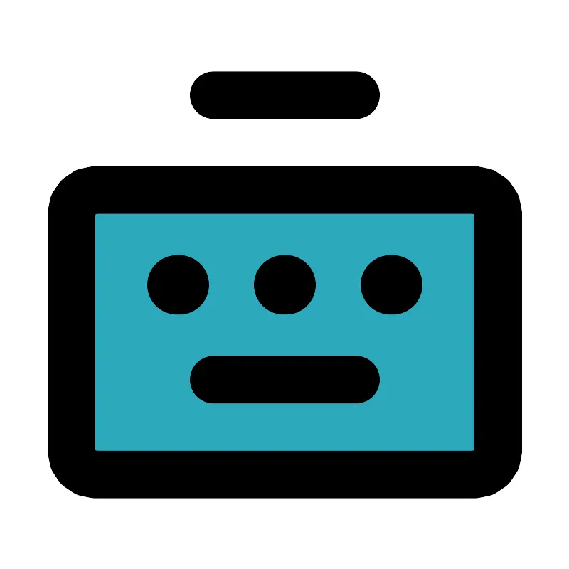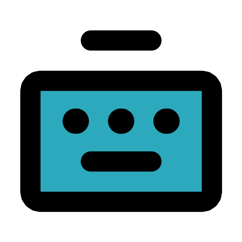 <svg fill="#000000" width="800px" height="800px" viewBox="0 0 24 24" id="keyboard-4" data-name="Flat Line" xmlns="http://www.w3.org/2000/svg" class="icon flat-line"><rect id="secondary" x="3" y="8" width="18" height="12" rx="1" style="fill: rgb(44, 169, 188); stroke-width: 2;"></rect><line id="primary-upstroke" x1="7.45" y1="12" x2="7.55" y2="12" style="fill: none; stroke: rgb(0, 0, 0); stroke-linecap: round; stroke-linejoin: round; stroke-width: 2.5;"></line><line id="primary-upstroke-2" data-name="primary-upstroke" x1="16.55" y1="12" x2="16.45" y2="12" style="fill: none; stroke: rgb(0, 0, 0); stroke-linecap: round; stroke-linejoin: round; stroke-width: 2.5;"></line><line id="primary-upstroke-3" data-name="primary-upstroke" x1="11.95" y1="12" x2="12.05" y2="12" style="fill: none; stroke: rgb(0, 0, 0); stroke-linecap: round; stroke-linejoin: round; stroke-width: 2.5;"></line><path id="primary" d="M9,16h6m6,3V9a1,1,0,0,0-1-1H4A1,1,0,0,0,3,9V19a1,1,0,0,0,1,1H20A1,1,0,0,0,21,19ZM9,4h6" style="fill: none; stroke: rgb(0, 0, 0); stroke-linecap: round; stroke-linejoin: round; stroke-width: 2;"></path></svg>