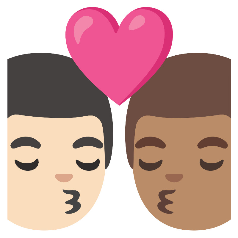 поцелуй с светлой кожей и средне-темной