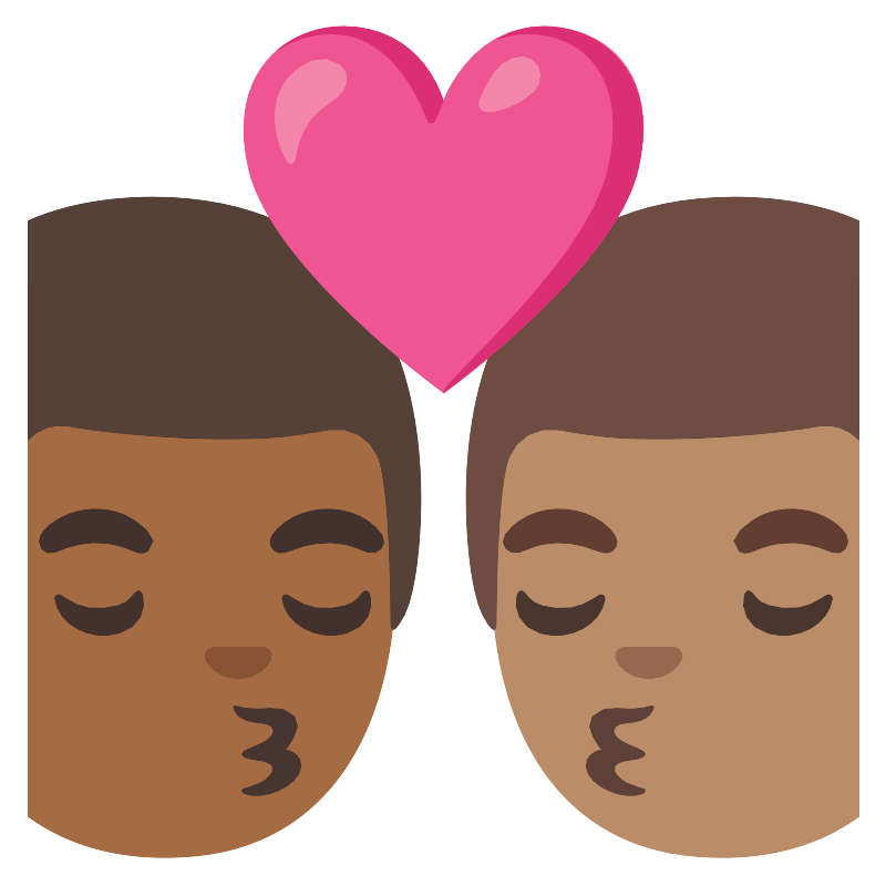 Поцелуй мужчина мужчина со средним тёмным и кожей светлого оттенка
