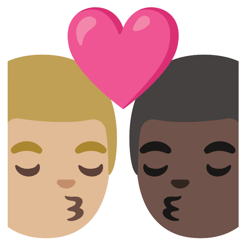 Поцелуй мужчина мужчина со средним светлым и тёмным оттенком кожи