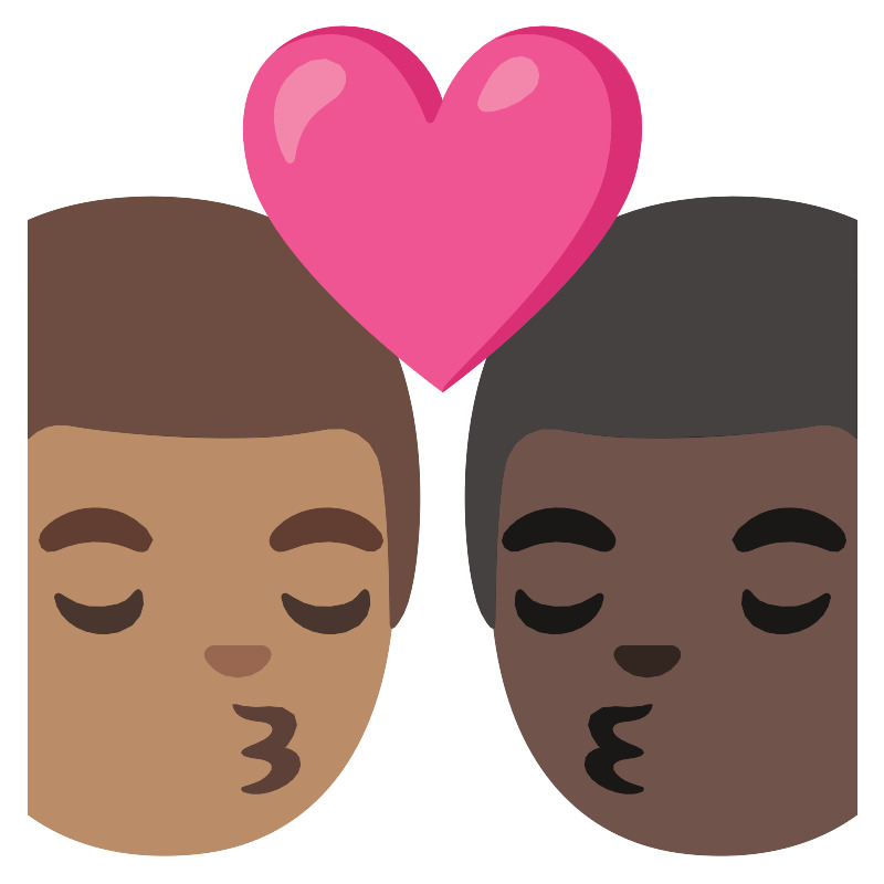 Поцелуй мужчина мужчина со средним светлым и тёмным оттенком кожи