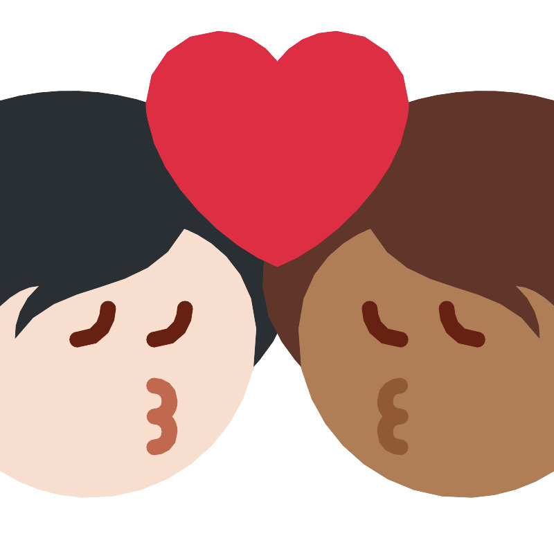 Поцелуй человека и человека светлый тон кожи, средний темный тон кожи