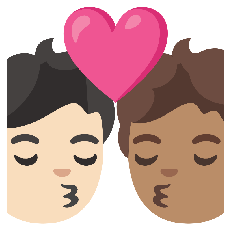 Поцелуй человек человек с светлой и средней кожей