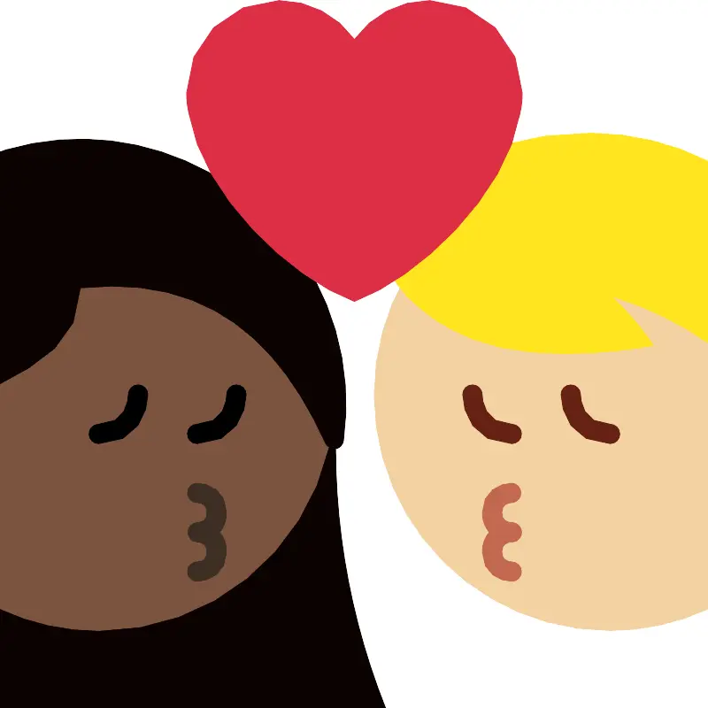 Поцелуй женщина мужчина тёмной кожи средней светлой кожи