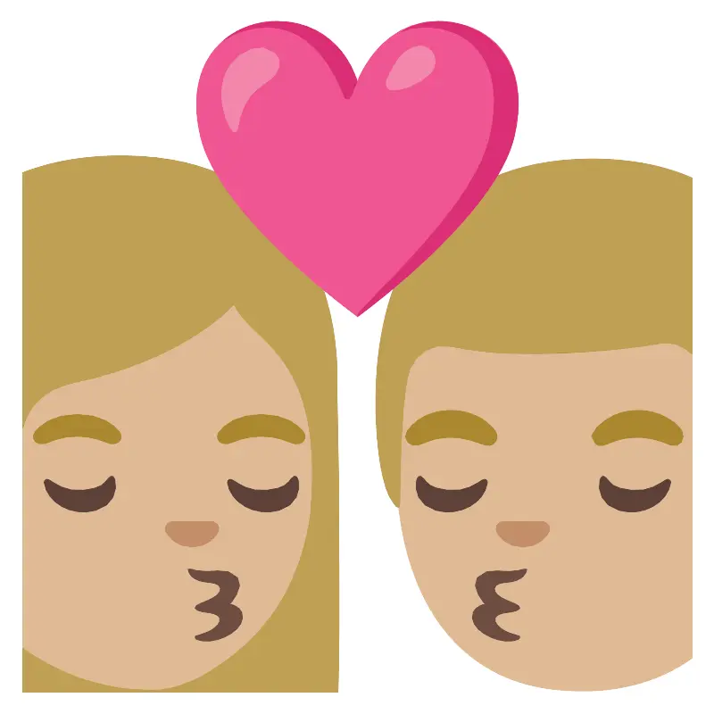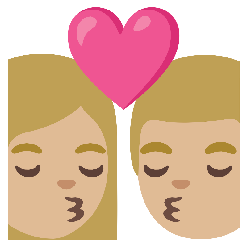 Поцелуй женщина мужчина со средним светлым и тёмным оттенком кожи