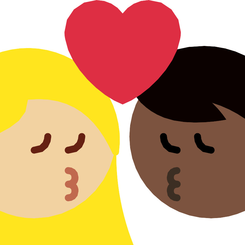 Поцелуй женщина мужчина средне-светлый тон кожи тёмный тон кожи