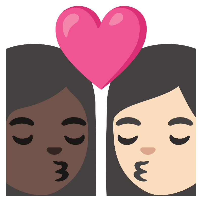 Поцелуй женщина женщина тёмный и светлый тон кожи
