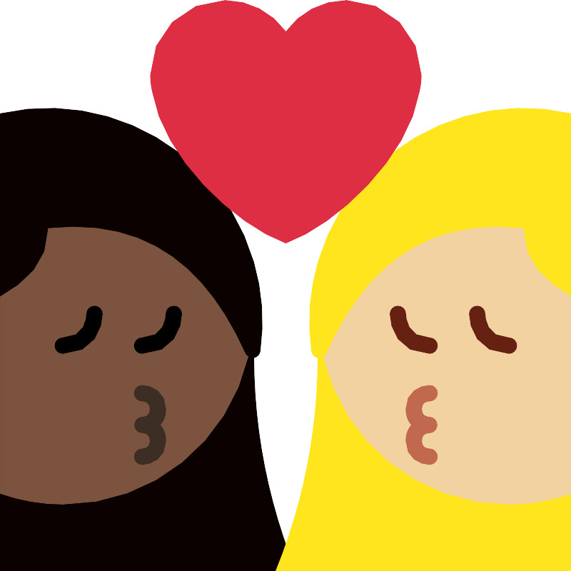 Целование женщины женщины темная кожа средняя светлая кожа
