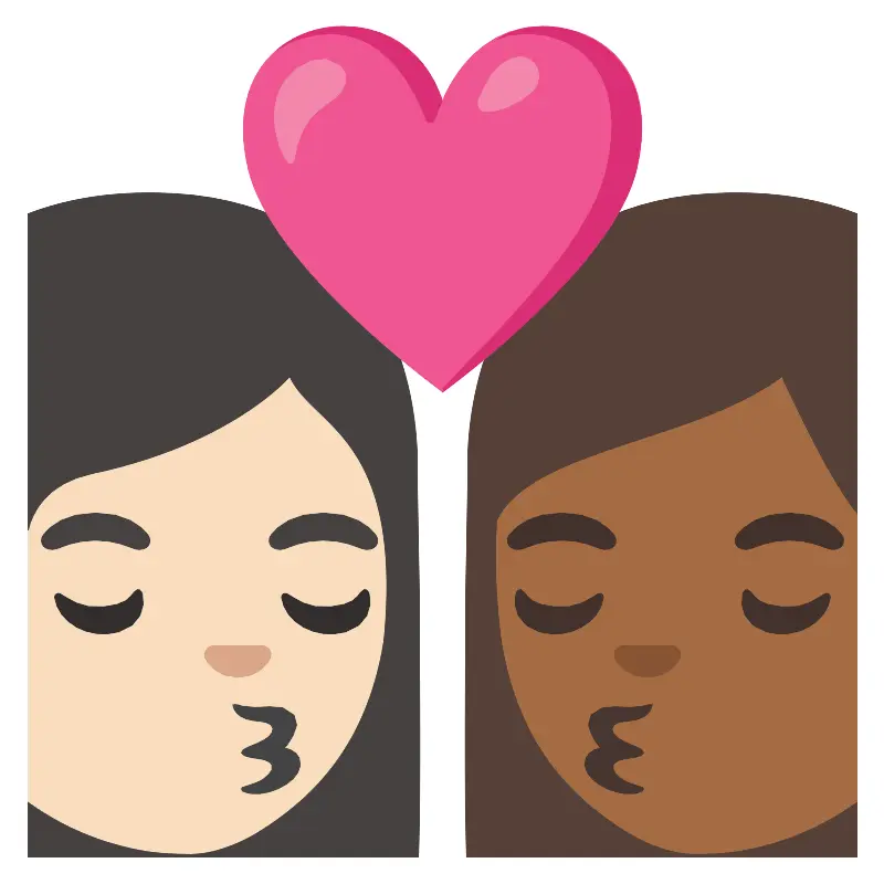 Поцелуй женщина женщина светлый и средний тёмный тон кожи