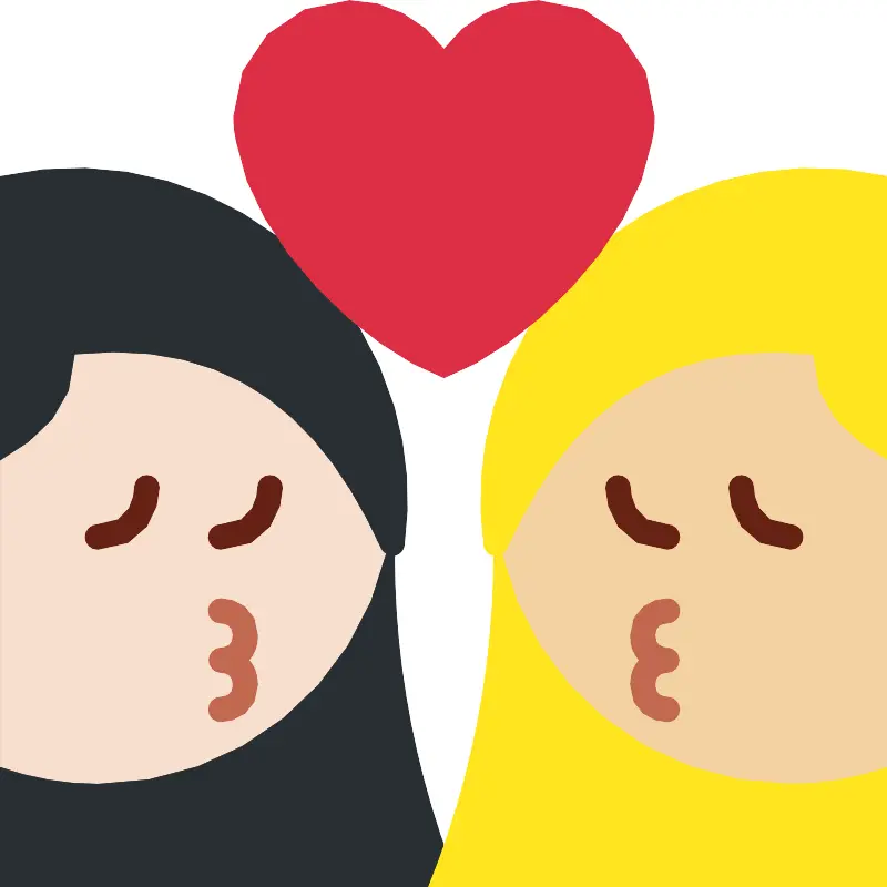 Целование женщины женщины светлая кожа средняя светлая кожа