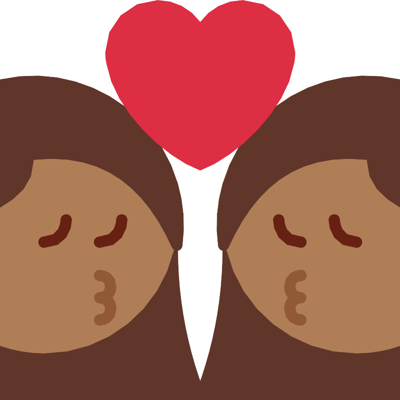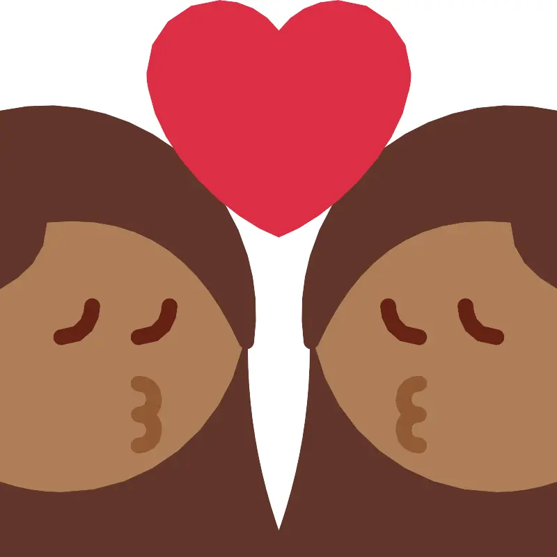 Целование женщины женщины средняя темная кожа