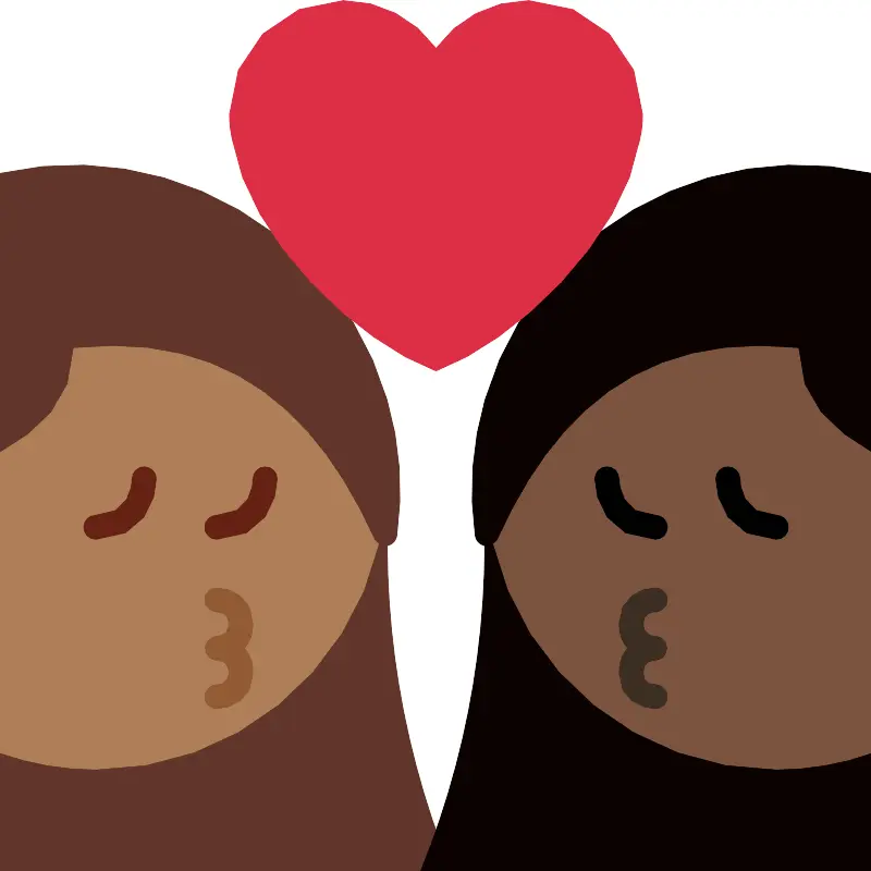 Целование женщины женщины средняя темная кожа