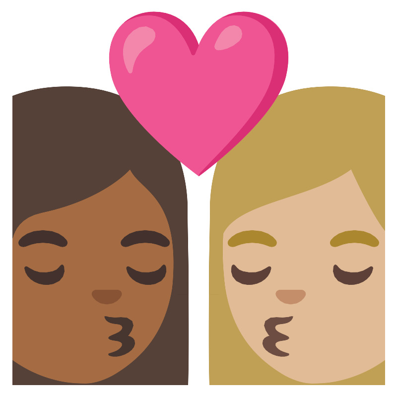 Поцелуй женщина женщина средний тёмный и светлый тон кожи