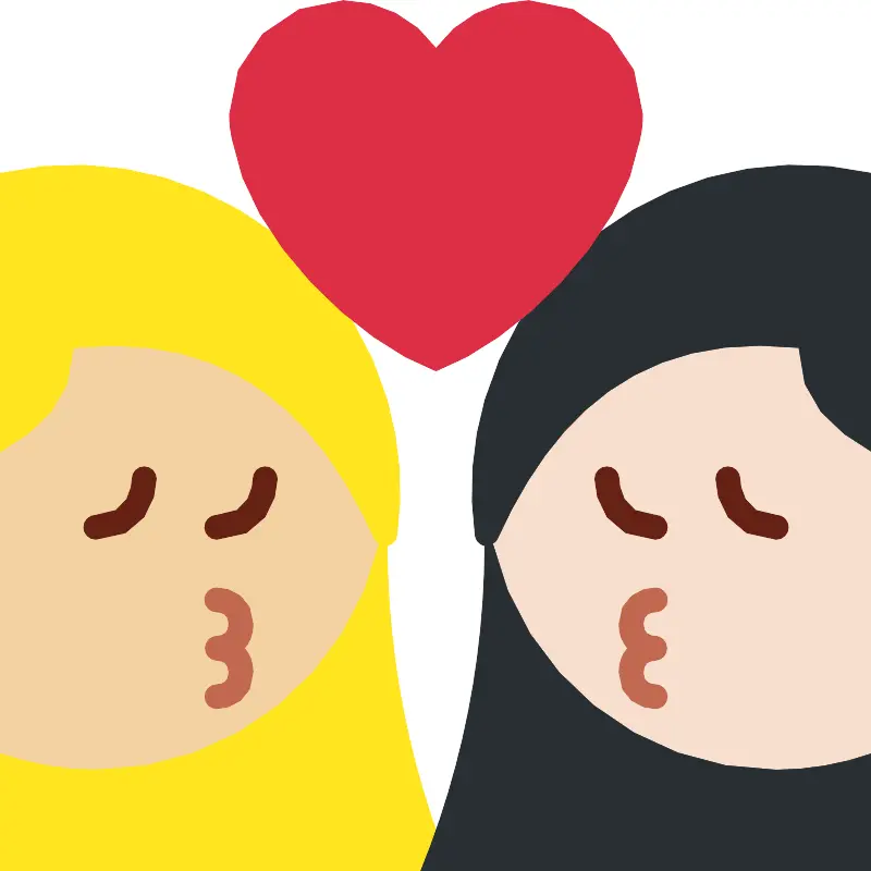 Целование женщины женщины средняя светлая кожа светлая кожа
