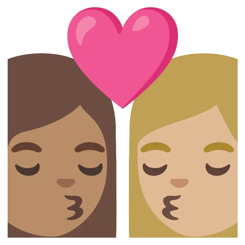 Поцелуй женщина женщина средний тёмный и светлый тон кожи