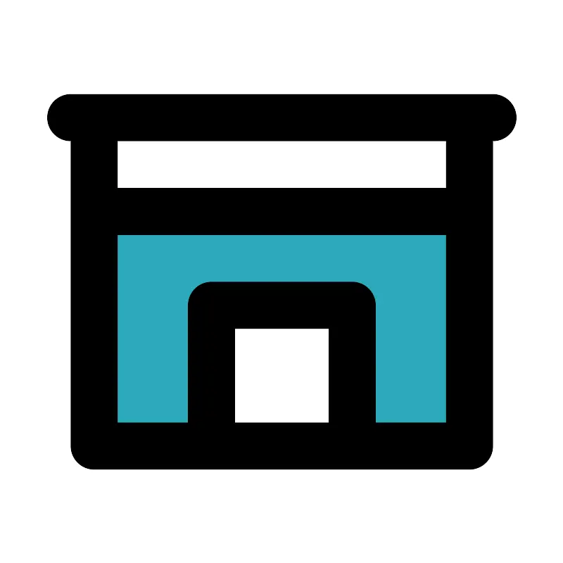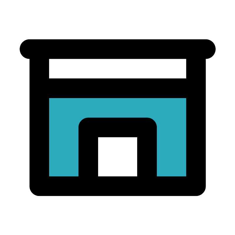 <svg fill="#000000" width="800px" height="800px" viewBox="0 0 24 24" id="kitchen-cabinet" data-name="Flat Line" xmlns="http://www.w3.org/2000/svg" class="icon flat-line"><polygon id="secondary" points="4 9 4 19 9 19 9 13 15 13 15 19 20 19 20 9 4 9" style="fill: rgb(44, 169, 188); stroke-width: 2;"></polygon><path id="primary" d="M9,13h6v6H9ZM4,19H20V9H4ZM3,5H21M4,9H20V5H4Z" style="fill: none; stroke: rgb(0, 0, 0); stroke-linecap: round; stroke-linejoin: round; stroke-width: 2;"></path></svg>