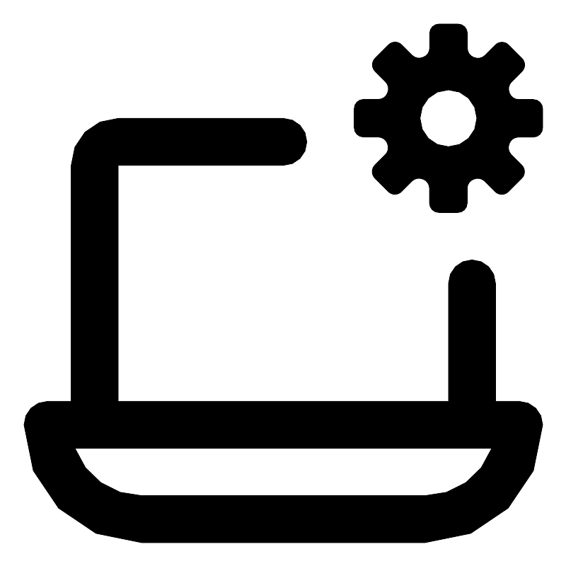 <svg fill="#000000" width="800px" height="800px" viewBox="0 0 24 24" xmlns="http://www.w3.org/2000/svg"><path d="M22,17H21V12a1,1,0,0,0-2,0v5H5V7h7a1,1,0,0,0,0-2H5A2,2,0,0,0,3,7V17H2a1,1,0,0,0-1,1,5.006,5.006,0,0,0,5,5H18a5.006,5.006,0,0,0,5-5A1,1,0,0,0,22,17Zm-4,4H6a3.006,3.006,0,0,1-2.829-2H20.829A3.006,3.006,0,0,1,18,21ZM22.6,4.2h-.628a.415.415,0,0,1-.38-.27l0-.005a.415.415,0,0,1,.08-.458l.444-.444a.4.4,0,0,0,0-.571l-.561-.561a.4.4,0,0,0-.571,0l-.444.444a.413.413,0,0,1-.458.079l-.006,0a.416.416,0,0,1-.269-.38V1.4a.4.4,0,0,0-.4-.4H18.6a.4.4,0,0,0-.4.4v.628a.416.416,0,0,1-.269.38l-.006,0a.413.413,0,0,1-.458-.079l-.444-.444a.4.4,0,0,0-.571,0l-.561.561a.4.4,0,0,0,0,.571l.444.444a.415.415,0,0,1,.08.458l0,.005a.415.415,0,0,1-.38.27H15.4a.4.4,0,0,0-.4.4V5.4a.4.4,0,0,0,.4.4h.628a.416.416,0,0,1,.38.269l0,.006a.415.415,0,0,1-.08.458l-.444.444a.4.4,0,0,0,0,.571l.561.561a.4.4,0,0,0,.571,0l.444-.444a.415.415,0,0,1,.458-.08l.006,0a.414.414,0,0,1,.269.38V8.6a.4.4,0,0,0,.4.4H19.4a.4.4,0,0,0,.4-.4V7.968a.414.414,0,0,1,.269-.38l.006,0a.415.415,0,0,1,.458.08l.444.444a.4.4,0,0,0,.571,0l.561-.561a.4.4,0,0,0,0-.571l-.444-.444a.415.415,0,0,1-.08-.458l0-.006a.416.416,0,0,1,.38-.269H22.6a.4.4,0,0,0,.4-.4V4.6A.4.4,0,0,0,22.6,4.2ZM19,6.2A1.2,1.2,0,1,1,20.2,5,1.2,1.2,0,0,1,19,6.2Z"/></svg>