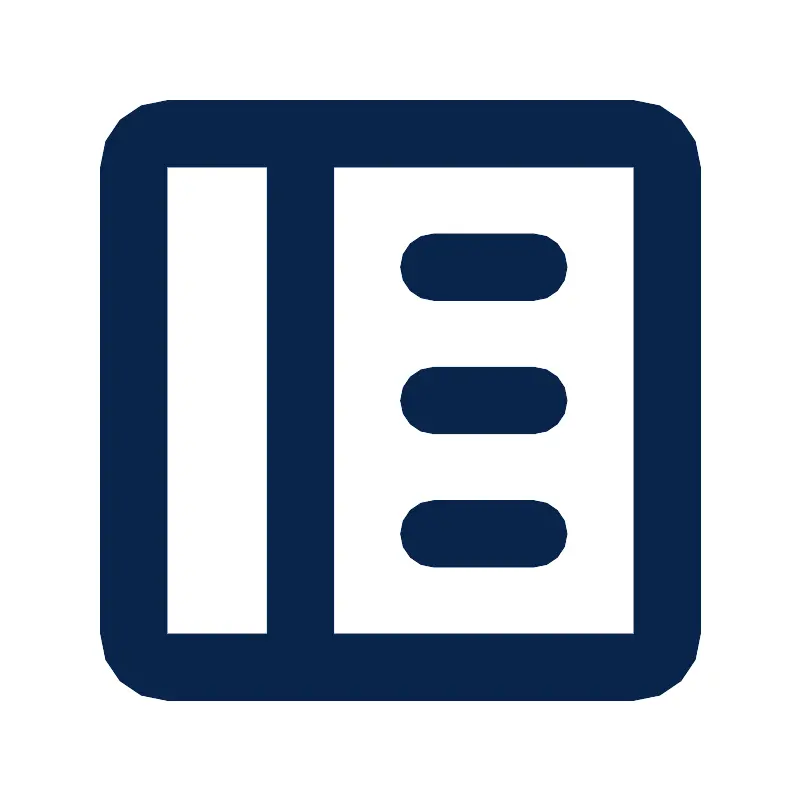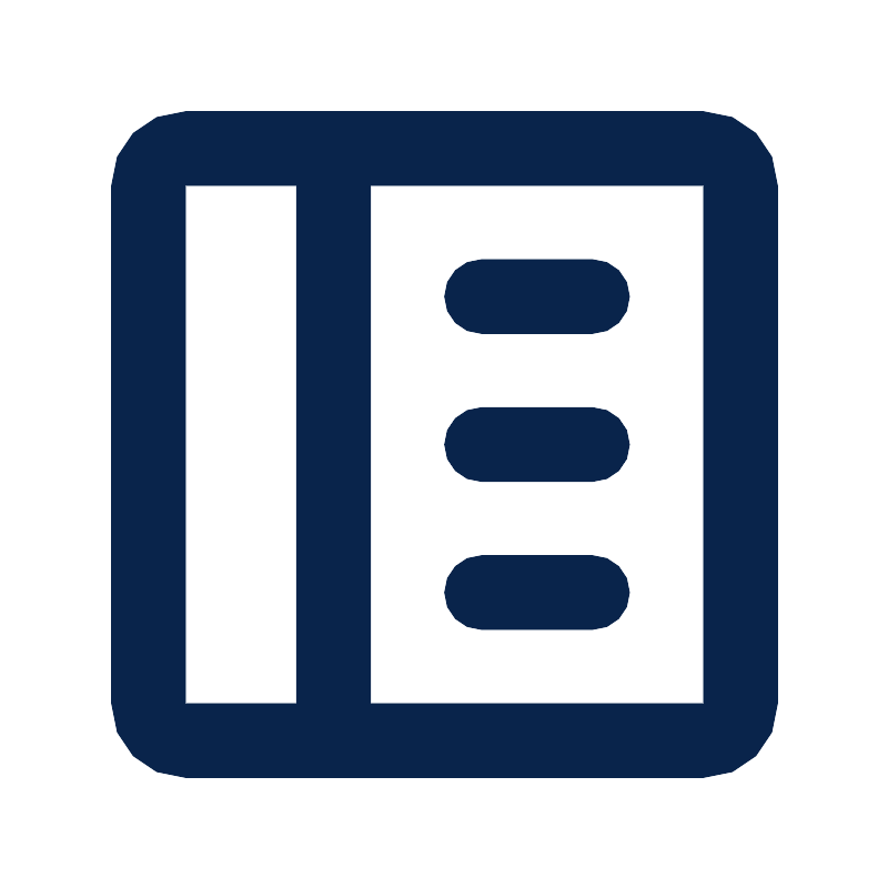 <path d="M3,5 C3,3.89543 3.89543,3 5,3 L19,3 C20.1046,3 21,3.89543 21,5 L21,19 C21,20.1046 20.1046,21 19,21 L5,21 C3.89543,21 3,20.1046 3,19 L3,5 Z M19,5 L10,5 L10,19 L19,19 L19,5 Z M5,5 L8,5 L8,19 L5,19 L5,5 Z M13,7 C12.4477,7 12,7.44772 12,8 C12,8.55228 12.4477,9 13,9 L16,9 C16.5523,9 17,8.55228 17,8 C17,7.44772 16.5523,7 16,7 L13,7 Z M12,12 C12,11.4477 12.4477,11 13,11 L16,11 C16.5523,11 17,11.4477 17,12 C17,12.5523 16.5523,13 16,13 L13,13 C12.4477,13 12,12.5523 12,12 Z M13,15 C12.4477,15 12,15.4477 12,16 C12,16.5523 12.4477,17 13,17 L16,17 C16.5523,17 17,16.5523 17,16 C17,15.4477 16.5523,15 16,15 L13,15 Z" id="形状" fill="#09244B">