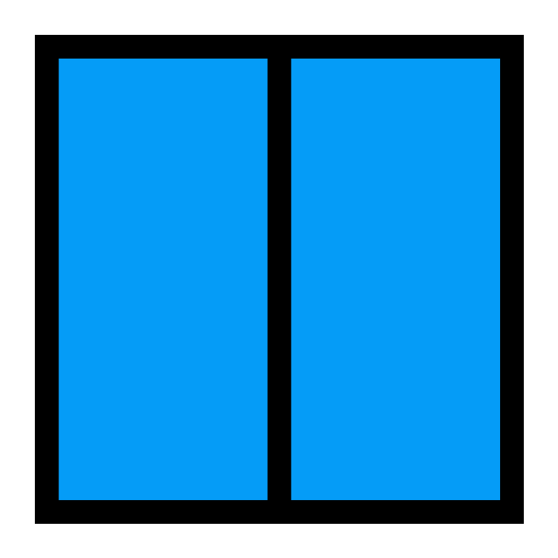 <svg width="800px" height="800px" viewBox="0 0 24 24" xmlns="http://www.w3.org/2000/svg" fill="none" stroke="#000000" stroke-width="1" stroke-linecap="round" stroke-linejoin="miter"><rect x="2" y="2" width="20" height="20" rx="0" fill="#059cf7" opacity="0.1"></rect><rect x="2" y="2" width="20" height="20" rx="0"></rect><line x1="12" y1="2" x2="12" y2="22"></line></svg>