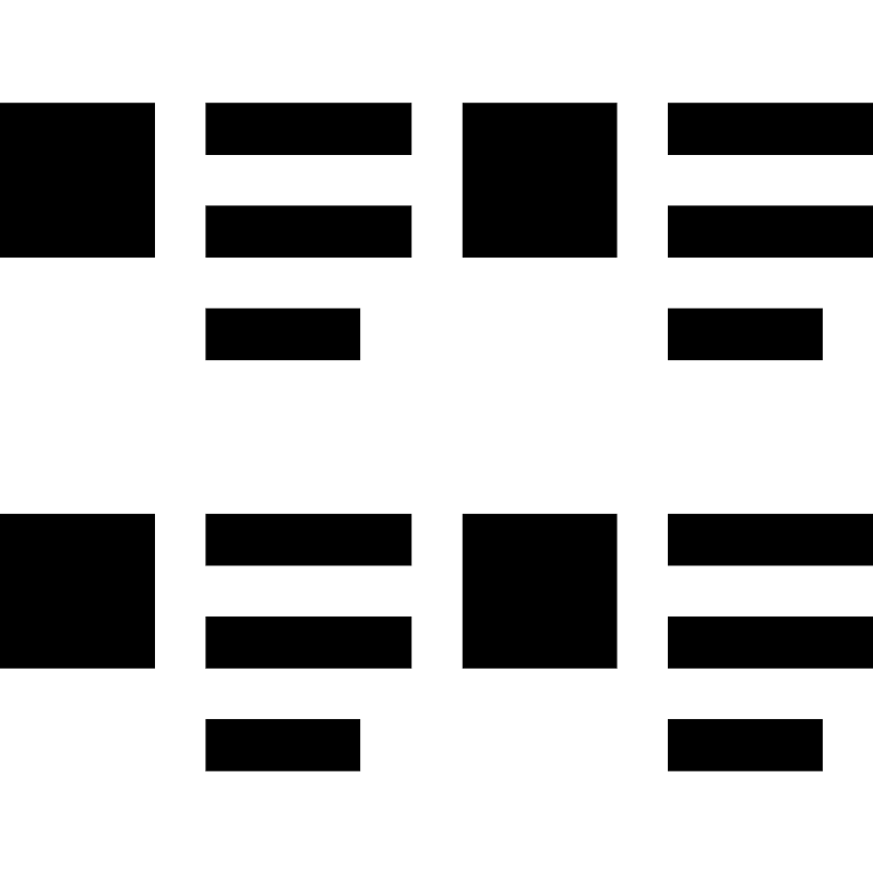 <path d="M0 2h3v3h-3v-3zM9 5h3v-3h-3v3zM0 13h3v-3h-3v3zM9 13h3v-3h-3v3zM4 3h4v-1h-4v1zM4 5h4v-1h-4v1zM13 2v1h4v-1h-4zM13 5h4v-1h-4v1zM7 5.999h-3v1h3v-1zM16 5.999h-3v1h3v-1zM4 11h4v-1h-4v1zM4 13h4v-1h-4v1zM13 11h4v-1h-4v1zM13 13h4v-1h-4v1zM4 14.999h3v-1h-3v1zM13 14.999h3v-1h-3v1z" fill="#000000" />