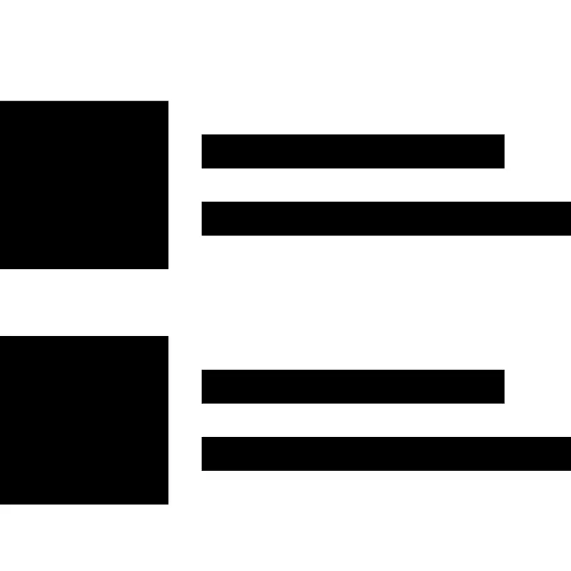 <path d="M15 5h-9v-1h9v1zM6 6v1h11v-1h-11zM0 8h5v-5h-5v5zM15 11h-9v1h9v-1zM6 14h11v-1h-11v1zM0 15h5v-5h-5v5z" fill="#000000" />