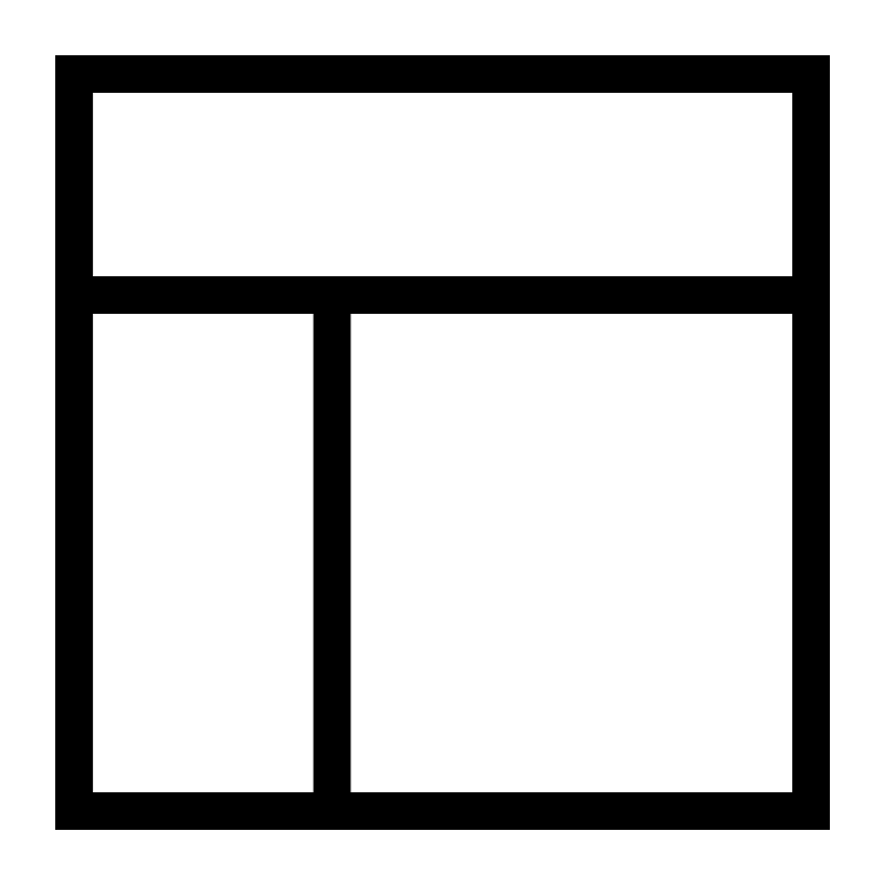 <svg width="800px" height="800px" viewBox="0 0 24 24" xmlns="http://www.w3.org/2000/svg" fill="none" stroke="#000000" stroke-width="1" stroke-linecap="round" stroke-linejoin="miter"><rect x="2" y="2" width="20" height="20" rx="0"></rect><line x1="9" y1="8" x2="9" y2="22"></line><line x1="22" y1="8" x2="2" y2="8"></line></svg>