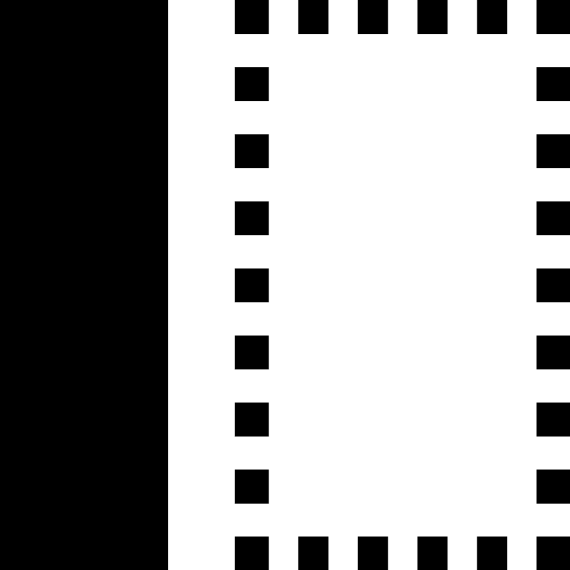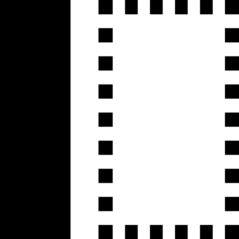 <path d="M0 0h5v17h-5v-17zM7 17h1v-1h-1v1zM14.222 17h0.889v-1h-0.889v1zM12.444 17h0.889v-1h-0.889v1zM8.889 17h0.889v-1h-0.889v1zM10.667 17h0.889v-1h-0.889v1zM16 17h1v-1h-1v1zM16 3h1v-1h-1v1zM16 15h1v-1h-1v1zM16 7h1v-1h-1v1zM16 5h1v-1h-1v1zM16 9h1v-1h-1v1zM16 11h1v-1h-1v1zM16 13h1v-1h-1v1zM16 0v1h1v-1h-1zM14.223 1h0.889v-1h-0.889v1zM12.445 1h0.889v-1h-0.889v1zM10.667 1h0.889v-1h-0.889v1zM8.889 1h0.889v-1h-0.889v1zM7 1h1v-1h-1v1zM7 15h1v-1h-1v1zM7 13h1v-1h-1v1zM7 7h1v-1h-1v1zM7 11h1v-1h-1v1zM7 5h1v-1h-1v1zM7 3h1v-1h-1v1zM7 9h1v-1h-1v1z" fill="#000000" />