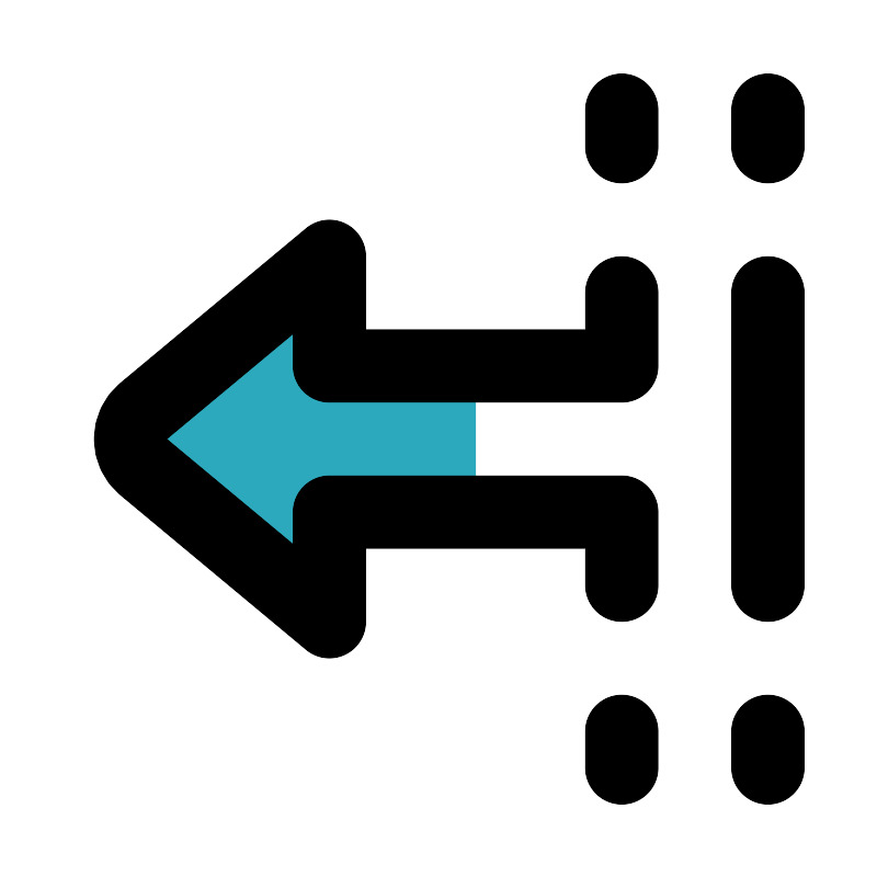 <svg fill="#000000" width="800px" height="800px" viewBox="0 0 24 24" id="left-junction-sign" data-name="Multi Color" xmlns="http://www.w3.org/2000/svg" class="icon multi-color"><title style="stroke-width: 2;">left junction sign</title><path id="secondary-fill" d="M9,7v3h4v4H9v3L3.92,12.77a1,1,0,0,1,0-1.54Z" style="fill: rgb(44, 169, 188); stroke-width: 2;"></path><path id="primary-stroke" d="M17,14H9v3L3.92,12.77a1,1,0,0,1,0-1.54L9,7v3h8m0,4v2m0,4v1m4-1v1M17,10V8m0-4V3m4,1V3m0,13V8" style="fill: none; stroke: rgb(0, 0, 0); stroke-linecap: round; stroke-linejoin: round; stroke-width: 2;"></path></svg>