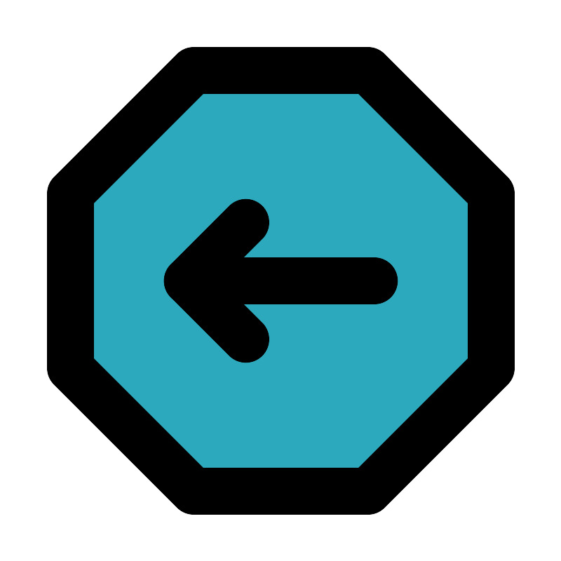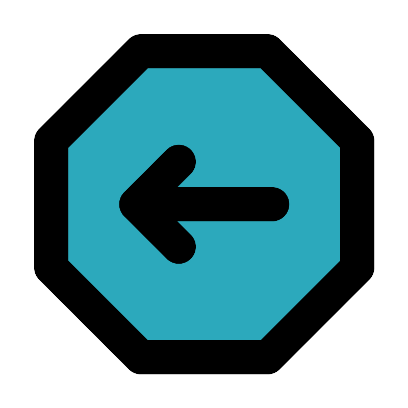 <svg fill="#000000" width="800px" height="800px" viewBox="0 0 24 24" id="left-octagon" data-name="Flat Line" xmlns="http://www.w3.org/2000/svg" class="icon flat-line"><polygon id="secondary" points="21 8.27 21 15.73 15.73 21 8.27 21 3 15.73 3 8.27 8.27 3 15.73 3 21 8.27" style="fill: rgb(44, 169, 188); stroke-width: 2;"></polygon><polyline id="primary" points="10.5 14.5 8 12 10.5 9.5" style="fill: none; stroke: rgb(0, 0, 0); stroke-linecap: round; stroke-linejoin: round; stroke-width: 2;"></polyline><path id="primary-2" data-name="primary" d="M16,12H8M3,8.27v7.46L8.27,21h7.46L21,15.73V8.27L15.73,3H8.27Z" style="fill: none; stroke: rgb(0, 0, 0); stroke-linecap: round; stroke-linejoin: round; stroke-width: 2;"></path></svg>