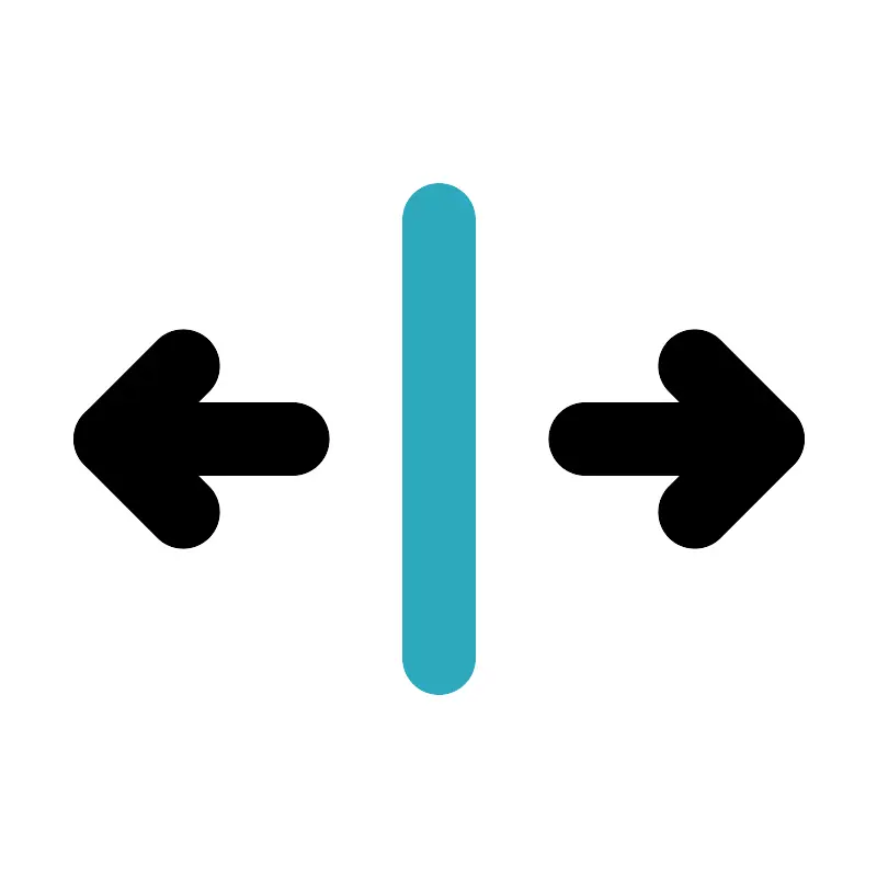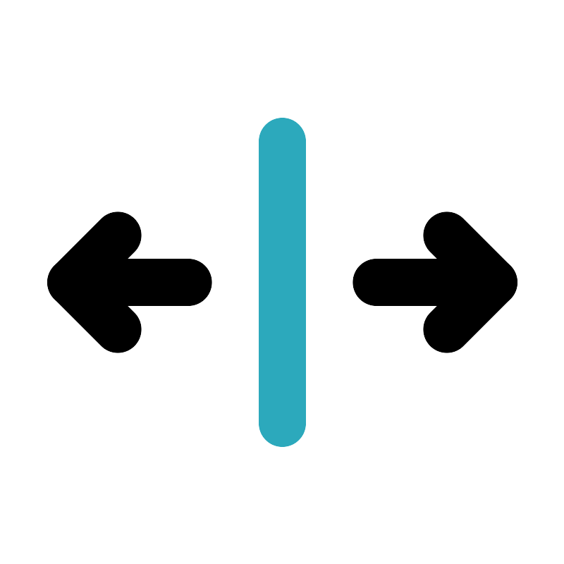 <svg fill="#000000" width="800px" height="800px" viewBox="0 0 24 24" id="left-right-scroll-bar-2" data-name="Line Color" xmlns="http://www.w3.org/2000/svg" class="icon line-color"><line id="secondary" x1="12" y1="6" x2="12" y2="18" style="fill: none; stroke: rgb(44, 169, 188); stroke-linecap: round; stroke-linejoin: round; stroke-width: 2;"></line><polyline id="primary" points="5 10 3 12 5 14" style="fill: none; stroke: rgb(0, 0, 0); stroke-linecap: round; stroke-linejoin: round; stroke-width: 2;"></polyline><polyline id="primary-2" data-name="primary" points="19 14 21 12 19 10" style="fill: none; stroke: rgb(0, 0, 0); stroke-linecap: round; stroke-linejoin: round; stroke-width: 2;"></polyline><path id="primary-3" data-name="primary" d="M8,12H3m13,0h5" style="fill: none; stroke: rgb(0, 0, 0); stroke-linecap: round; stroke-linejoin: round; stroke-width: 2;"></path></svg>