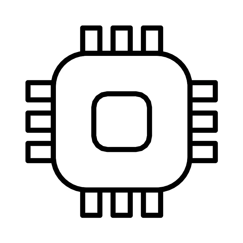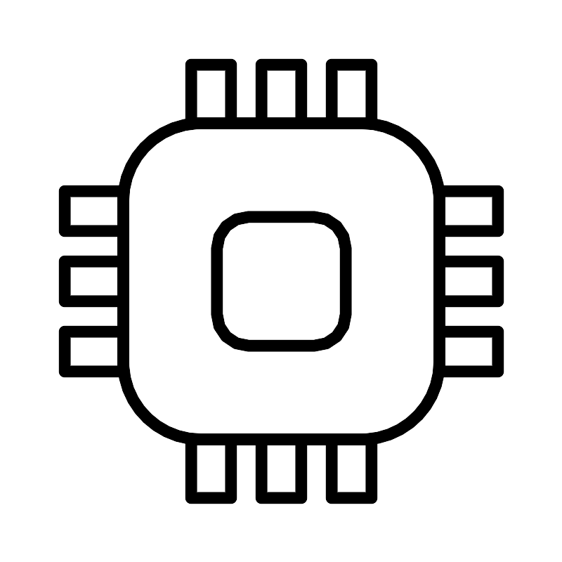 <svg width="800px" height="800px" viewBox="0 0 48 48" xmlns="http://www.w3.org/2000/svg"><defs><style>.a{fill:none;stroke:#000000;stroke-linecap:round;stroke-linejoin:round;}</style></defs><rect class="a" x="10.5" y="10.5" width="27" height="27" rx="6.603"/><rect class="a" x="18.5" y="18.5" width="11" height="11" rx="2.6899"/><rect class="a" x="22.3" y="5.5" width="3.4" height="5"/><rect class="a" x="28.3" y="5.5" width="3.4" height="5"/><rect class="a" x="16.3" y="5.5" width="3.4" height="5"/><rect class="a" x="22.3" y="37.5" width="3.4" height="5"/><rect class="a" x="28.3" y="37.5" width="3.4" height="5"/><rect class="a" x="16.3" y="37.5" width="3.4" height="5"/><rect class="a" x="37.5" y="22.3" width="5" height="3.4"/><rect class="a" x="37.5" y="28.3" width="5" height="3.4"/><rect class="a" x="37.5" y="16.3" width="5" height="3.4"/><rect class="a" x="5.5" y="22.3" width="5" height="3.4"/><rect class="a" x="5.5" y="28.3" width="5" height="3.4"/><rect class="a" x="5.5" y="16.3" width="5" height="3.4"/></svg>