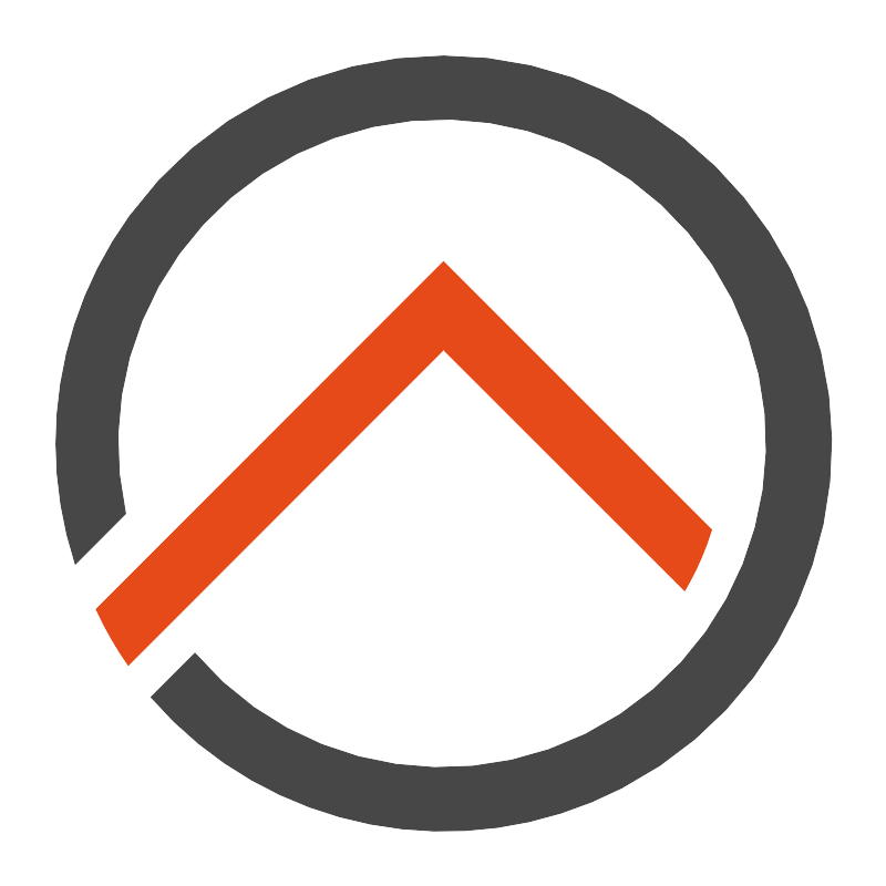 <svg width="800px" height="800px" viewBox="0 0 32 32" xmlns="http://www.w3.org/2000/svg"><title>file_type_light_openHAB</title><path d="M3.449,21.989,14.4,11.025l1.6-1.6,1.6,1.6,8.087,8.087-.012.041-.16.47-.181.459-.2.448-.224.437-.2.354L16,12.62,4.613,24.016a13.1,13.1,0,0,1-1.164-2.028Z" style="fill:#e64a19"/><path d="M16,2A14,14,0,1,1,5.431,25.162l.495-.5.359-.359.36-.36.36-.36.015-.015a11.708,11.708,0,1,0-2.5-5.03l-.78.782L2.7,20.365A13.994,13.994,0,0,1,16,2Z" style="fill:#474747"/></svg>
