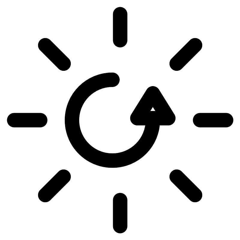 <svg width="800px" height="800px" viewBox="0 0 100 100" data-name="Layer 2" id="Layer_2" xmlns="http://www.w3.org/2000/svg"><defs><style>.cls-1{fill:none;stroke:#000000;stroke-linecap:round;stroke-linejoin:round;stroke-width:6px;}</style></defs><title/><path class="cls-1" d="M63.62,50A16.85,16.85,0,1,1,46.78,33.16"/><polygon class="cls-1" points="63.62 38.84 57.17 49.18 70.06 49.18 63.62 38.84"/><line class="cls-1" x1="50" x2="50" y1="94.14" y2="83.32"/><line class="cls-1" x1="50" x2="50" y1="16.68" y2="5.86"/><line class="cls-1" x1="94.14" x2="83.32" y1="50" y2="50"/><line class="cls-1" x1="16.68" x2="5.86" y1="50" y2="50"/><line class="cls-1" x1="81.21" x2="73.56" y1="81.21" y2="73.56"/><line class="cls-1" x1="26.44" x2="18.79" y1="26.44" y2="18.79"/><line class="cls-1" x1="81.21" x2="73.56" y1="18.79" y2="26.44"/><line class="cls-1" x1="26.44" x2="18.79" y1="73.56" y2="81.21"/></svg>