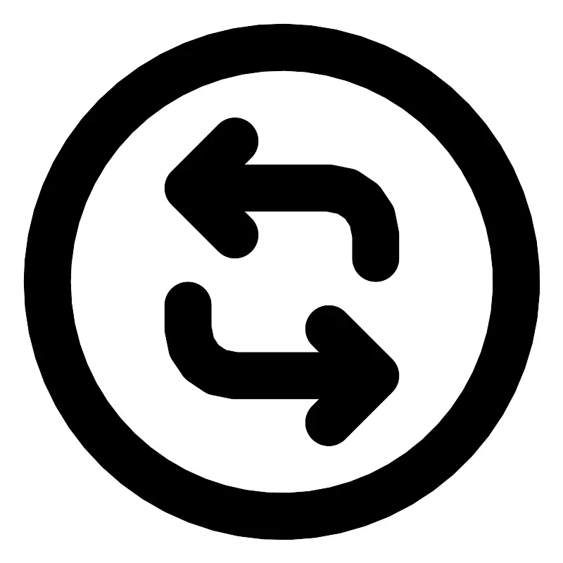 <svg width="800px" height="800px" viewBox="0 0 24 24" fill="none" xmlns="http://www.w3.org/2000/svg"><path d="M8 8L10 6M8 8L10 10M8 8H14C15.1046 8 16 8.89543 16 10V11M16 16L14 18M16 16L14 14M16 16H10C8.89543 16 8 15.1046 8 14V13" stroke="#000000" stroke-linecap="round" stroke-linejoin="round" stroke-width="2"/><circle r="10" stroke="#000000" stroke-linecap="round" stroke-linejoin="round" stroke-width="2" transform="matrix(-1 0 0 1 12 12)"/></svg>