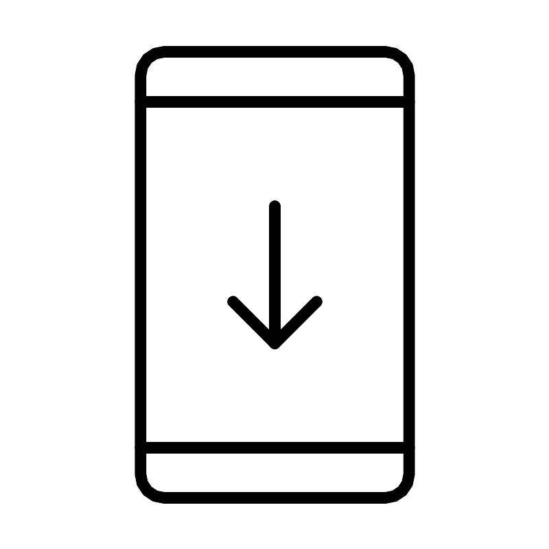 <svg width="800px" height="800px" viewBox="0 0 48 48" xmlns="http://www.w3.org/2000/svg"><defs><style>.a{fill:none;stroke:#000000;stroke-linecap:round;stroke-linejoin:round;}</style></defs><rect class="a" x="12.2611" y="4.5" width="23.4778" height="39" rx="2.0618"/><line class="a" x1="12.2611" y1="8.8804" x2="35.7389" y2="8.8804"/><line class="a" x1="12.2611" y1="39.1196" x2="35.7389" y2="39.1196"/><line class="a" x1="24" y1="30" x2="24" y2="18"/><polyline class="a" points="27.65 26.35 24 30 20.35 26.35"/></svg>
