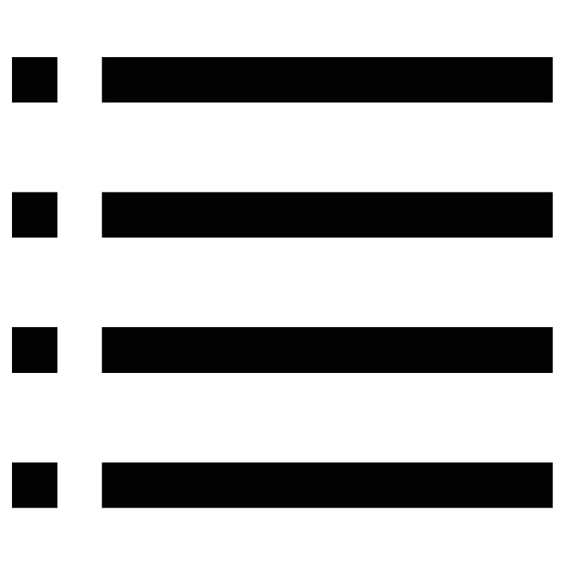 <svg width="800px" height="800px" viewBox="0 0 24 24" id="Layer_1" data-name="Layer 1" xmlns="http://www.w3.org/2000/svg"><defs><style>.cls-1{fill:none;stroke:#020202;stroke-miterlimit:10;stroke-width:1.92px;}</style></defs><line class="cls-1" x1="4.33" y1="3.38" x2="23.5" y2="3.38"/><line class="cls-1" x1="4.33" y1="9.13" x2="23.5" y2="9.13"/><line class="cls-1" x1="4.33" y1="14.88" x2="23.5" y2="14.88"/><line class="cls-1" x1="4.33" y1="20.63" x2="23.5" y2="20.63"/><line class="cls-1" x1="0.5" y1="3.38" x2="2.42" y2="3.38"/><line class="cls-1" x1="0.5" y1="9.13" x2="2.42" y2="9.13"/><line class="cls-1" x1="0.5" y1="14.88" x2="2.42" y2="14.88"/><line class="cls-1" x1="0.5" y1="20.63" x2="2.42" y2="20.63"/></svg>