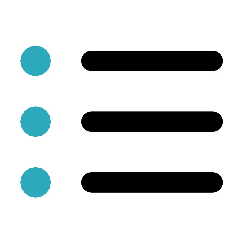 <svg fill="#000000" width="800px" height="800px" viewBox="0 0 24 24" id="list-2" data-name="Flat Color" xmlns="http://www.w3.org/2000/svg" class="icon flat-color"><path id="primary" d="M21,19H9a1,1,0,0,1,0-2H21a1,1,0,0,1,0,2Zm0-6H9a1,1,0,0,1,0-2H21a1,1,0,0,1,0,2Zm0-6H9A1,1,0,0,1,9,5H21a1,1,0,0,1,0,2Z" style="fill: rgb(0, 0, 0);"></path><path id="secondary" d="M5,6A1.5,1.5,0,1,1,3.5,4.5,1.5,1.5,0,0,1,5,6ZM3.5,10.5A1.5,1.5,0,1,0,5,12,1.5,1.5,0,0,0,3.5,10.5Zm0,6A1.5,1.5,0,1,0,5,18,1.5,1.5,0,0,0,3.5,16.5Z" style="fill: rgb(44, 169, 188);"></path></svg>