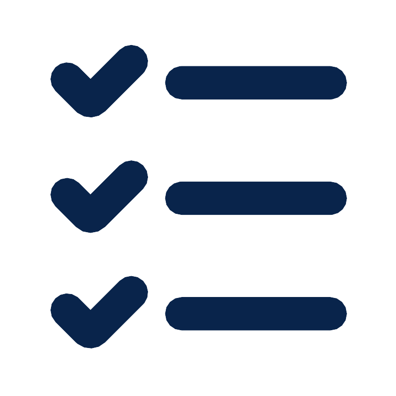 <path d="M7.23767,17.0125 C7.62819,16.622 8.26136,16.622 8.65188,17.0125 C9.01236,17.3729615 9.04008923,17.9402207 8.73506769,18.3324973 L8.65188,18.4267 L6.35378,20.7248 C5.89817333,21.1804533 5.17834996,21.2108302 4.68751439,20.8159307 L4.58602,20.7248 L3.34856,19.4874 C2.95803,19.0968 2.95803,18.4637 3.34856,18.0731 C3.70904,17.7126385 4.27627503,17.6849107 4.6685635,17.9899166 L4.76277,18.0731 L5.4699,18.7803 L7.23767,17.0125 Z M20.0002,17.9999 C20.5525,17.9999 21.0002,18.4477 21.0002,18.9999 C21.0002,19.5522 20.5525,19.9999 20.0002,19.9999 L11.0002,19.9999 C10.4479,19.9999 10.0002,19.5522 10.0002,18.9999 C10.0002,18.4477 10.4479,17.9999 11.0002,17.9999 L20.0002,17.9999 Z M8.65188,10.0125 C9.0424,10.403 9.0424,11.0362 8.65188,11.4267 L6.35378,13.7248 C5.86563,14.213 5.07417,14.213 4.58602,13.7248 L3.34856,12.4873 C2.95803,12.0968 2.95803,11.4637 3.34856,11.0731 C3.73908,10.6826 4.37225,10.6826 4.76277,11.0731 L5.4699,11.7803 L7.23767,10.0125 C7.62819,9.62197 8.26136,9.62197 8.65188,10.0125 Z M20.0002,10.9999 C20.5525,10.9999 21.0002,11.4477 21.0002,11.9999 C21.0002,12.51275 20.614173,12.9354092 20.1168239,12.9931725 L20.0002,12.9999 L11.0002,12.9999 C10.4479,12.9999 10.0002,12.5522 10.0002,11.9999 C10.0002,11.4871429 10.386227,11.0644041 10.8835761,11.0066289 L11.0002,10.9999 L20.0002,10.9999 Z M7.23767,3.0125 C7.62819,2.62197 8.26136,2.62197 8.65188,3.0125 C9.01236,3.37298 9.04008923,3.94021503 8.73506769,4.3325035 L8.65188,4.42671 L6.35378,6.72481 C5.89817333,7.18041667 5.17834996,7.21079044 4.68751439,6.81593133 L4.58602,6.72481 L3.34856,5.48735 C2.95803,5.09683 2.95803,4.46366 3.34856,4.07314 C3.70904,3.71265077 4.27627503,3.68492083 4.6685635,3.98995018 L4.76277,4.07314 L5.4699,4.78026 L7.23767,3.0125 Z M20.0002,3.99995 C20.5525,3.99995 21.0002,4.44766 21.0002,4.99995 C21.0002,5.51278143 20.614173,5.93545653 20.1168239,5.9932222 L20.0002,5.99995 L11.0002,5.99995 C10.4479,5.99995 10.0002,5.55223 10.0002,4.99995 C10.0002,4.48710929 10.386227,4.06444214 10.8835761,4.00667766 L11.0002,3.99995 L20.0002,3.99995 Z" id="形状" fill="#09244B">