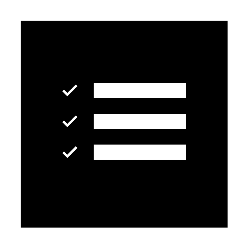 <path fill-rule="evenodd" clip-rule="evenodd" d="M2 2H22V22H2V2ZM9.04475 8H18V9.49254H9.04475V8ZM9.04475 10.9851H18V12.4776H9.04475V10.9851ZM18 13.9702H9.04475V15.4627H18V13.9702ZM7.49254 8.32587L7.31717 8.14925L6.49751 8.9689L6.17662 8.64925L6 8.82462L6.49751 9.32089L7.49254 8.32587ZM7.31717 11.1343L7.49254 11.3109L6.49751 12.306L6 11.8097L6.17662 11.6343L6.49751 11.954L7.31717 11.1343ZM7.49254 14.296L7.31717 14.1194L6.49751 14.9391L6.17662 14.6194L6 14.7948L6.49751 15.2911L7.49254 14.296Z" fill="#000000"/>