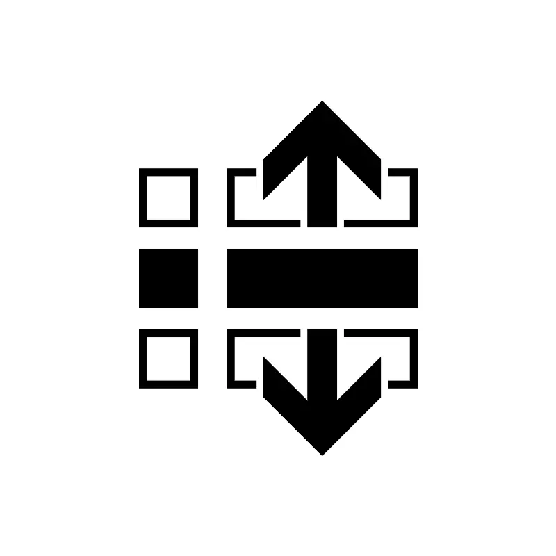 <path fill="#000000" fill-opacity="1" stroke-width="0.2" stroke-linejoin="round" d="M 19,34L 27,34L 27,42L 19,42L 19,34 Z M 31,34L 57,34L 57,42L 31,42L 31,34 Z M 19,45L 27,45L 27,53L 19,53L 19,45 Z M 26,46L 20,46L 20,52L 26,52L 26,46 Z M 19,23L 27,23L 27,31L 19,31L 19,23 Z M 26,24L 20,24L 20,30L 26,30L 26,24 Z M 31,31L 31,23L 35,23L 35,24L 32,24L 32,30L 41,30L 41,31L 31,31 Z M 57,23L 57,31L 47,31L 47,30.0001L 56,30L 56,24L 53,24.0001L 53,23L 57,23 Z M 31,45L 41,45L 41,46L 32,46L 32,52L 35,52L 35,53L 31,53L 31,45 Z M 57,53L 53,53L 53,52L 56,52L 56,46L 47,46L 47,45L 57,45L 57,53 Z M 36,48.75L 42,54.75L 42,45L 46,45L 46,54.75L 52,48.75L 52,54.25L 44,62.25L 36,54.25L 36,48.75 Z M 36,27.25L 36,21.75L 44,13.75L 52,21.75L 52,27.25L 46,21.25L 46,31L 42,31L 42,21.25L 36,27.25 Z "/>