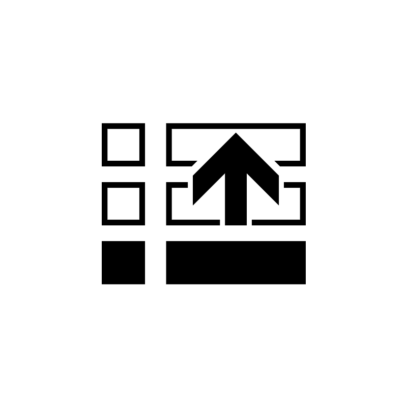 <path fill="#000000" fill-opacity="1" stroke-width="0.2" stroke-linejoin="round" d="M 19,45L 27,45L 27,53L 19,53L 19,45 Z M 31,45L 57,45L 57,53L 31,53L 31,45 Z M 31,42L 31,34L 35,34.0001L 35,35.0001L 32,35.0001L 32,41.0001L 41,41.0001L 41,42.0001L 31,42 Z M 57,34L 57,42L 47,42.0001L 47,41.0001L 56,41.0001L 56,35.0001L 53,35.0001L 53,34.0001L 57,34 Z M 36,38.25L 36.0001,32.75L 44,24.75L 52,32.75L 52,38.25L 46,32.25L 46,42L 42,42L 42,32.25L 36,38.25 Z M 31,23L 57,23L 57,31L 52.25,31L 51.25,30L 56,30L 56,24L 32,24L 32,30L 36.75,30L 35.75,31L 31,31L 31,23 Z M 19,23L 27,23L 27,31L 19,31L 19,23 Z M 20,24L 20,30L 26,30L 26,24L 20,24 Z M 19,34L 27,34L 27,42L 19,42L 19,34 Z M 26,35L 20,35L 20,41L 26,41L 26,35 Z "/>