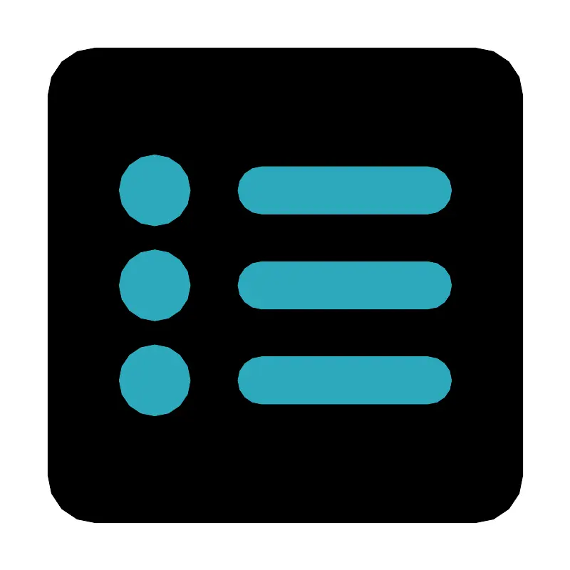 <svg fill="#000000" width="800px" height="800px" viewBox="0 0 24 24" id="list-square" data-name="Flat Color" xmlns="http://www.w3.org/2000/svg" class="icon flat-color"><rect id="primary" x="2" y="2" width="20" height="20" rx="2" style="fill: rgb(0, 0, 0);"></rect><path id="secondary" d="M18,17H11a1,1,0,0,1,0-2h7a1,1,0,0,1,0,2Zm0-4H11a1,1,0,0,1,0-2h7a1,1,0,0,1,0,2Zm0-4H11a1,1,0,0,1,0-2h7a1,1,0,0,1,0,2ZM6.5,6.5A1.5,1.5,0,1,0,8,8,1.5,1.5,0,0,0,6.5,6.5Zm0,4A1.5,1.5,0,1,0,8,12,1.5,1.5,0,0,0,6.5,10.5Zm0,4A1.5,1.5,0,1,0,8,16,1.5,1.5,0,0,0,6.5,14.5Z" style="fill: rgb(44, 169, 188);"></path></svg>