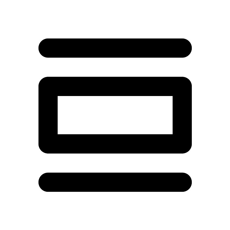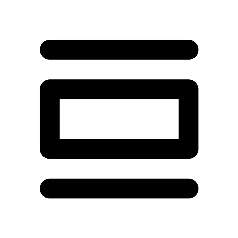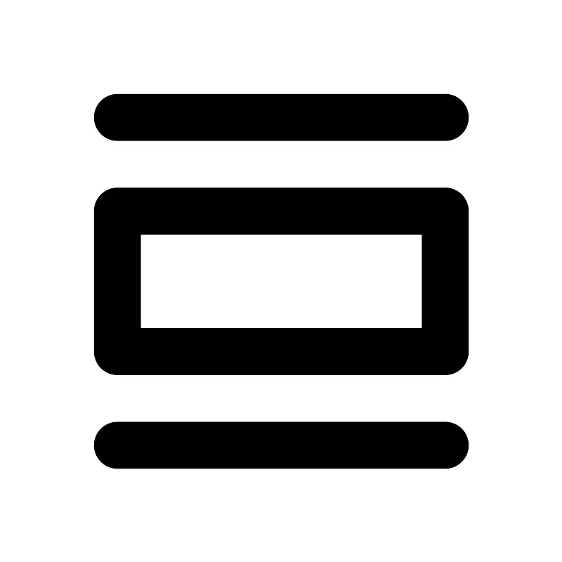 <svg width="800px" height="800px" viewBox="0 0 24 24" xmlns="http://www.w3.org/2000/svg" aria-labelledby="listViewIconTitle" stroke="#000000" stroke-width="2" stroke-linecap="round" stroke-linejoin="round" fill="none" color="#000000"> <title id="listViewIconTitle">List view</title> <path d="M5 5H19"/> <path d="M5 19H19"/> <rect x="5" y="9" width="14" height="6"/> </svg>